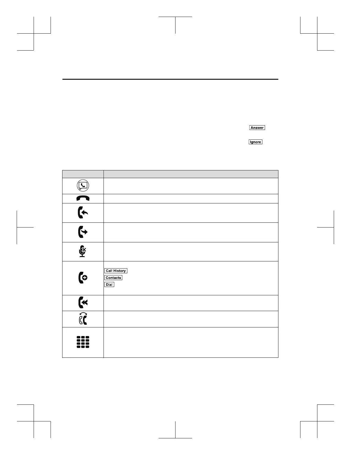 The following icons are displayed on the screen during a call. Icons which can be used