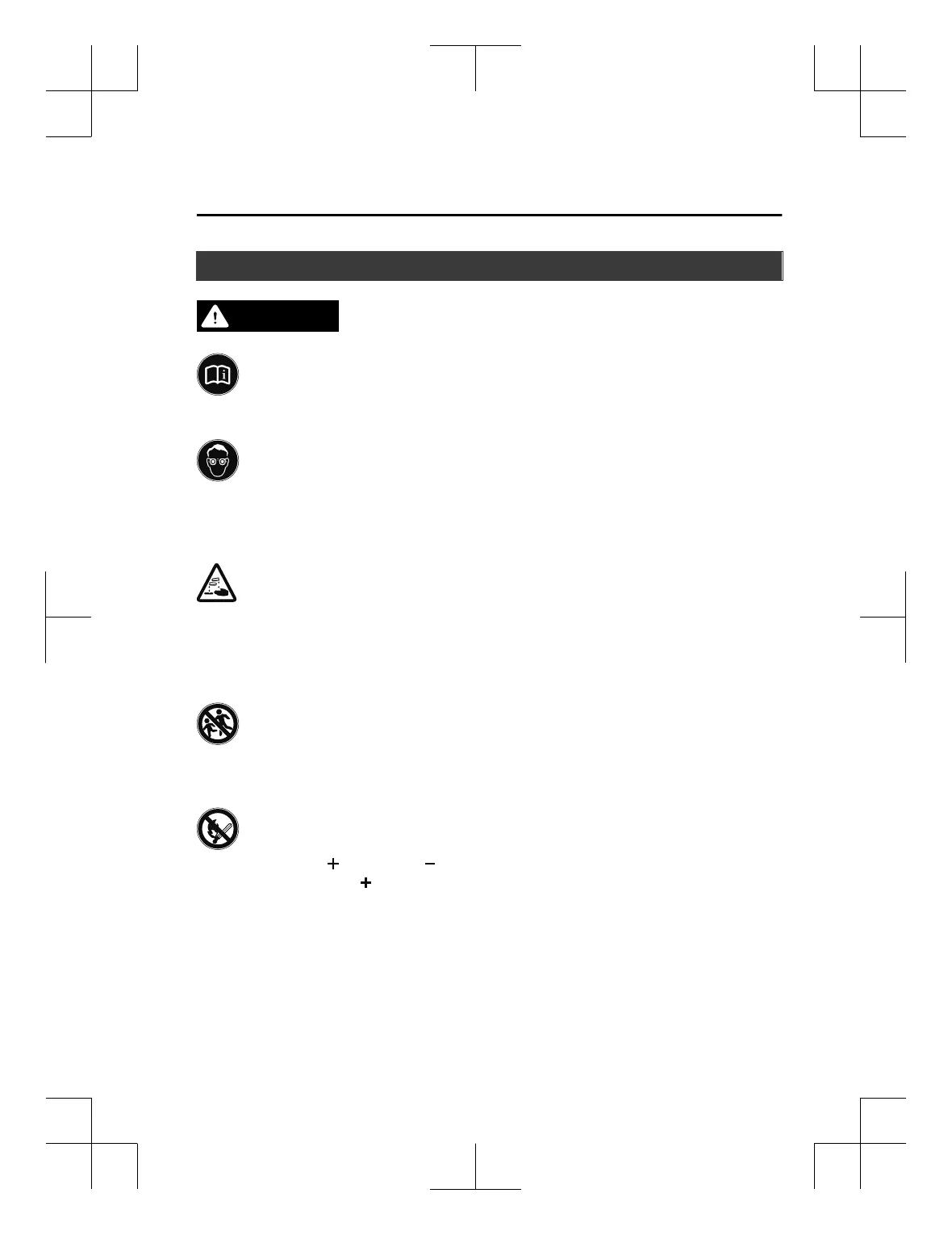 ) or negative ( ) terminal of the battery when working near a battery.