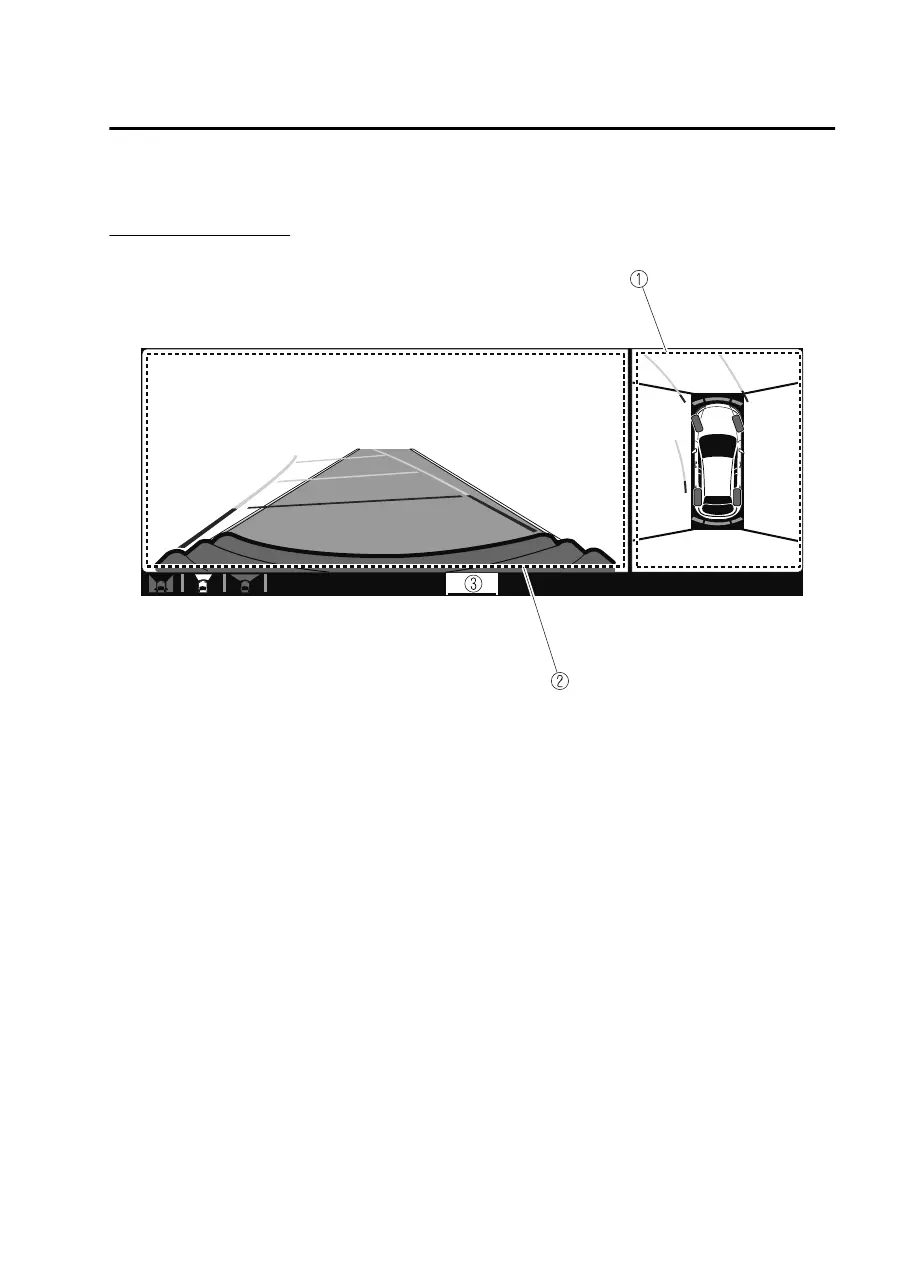 Displays the image of the area around the vehicle and the vehicle front.