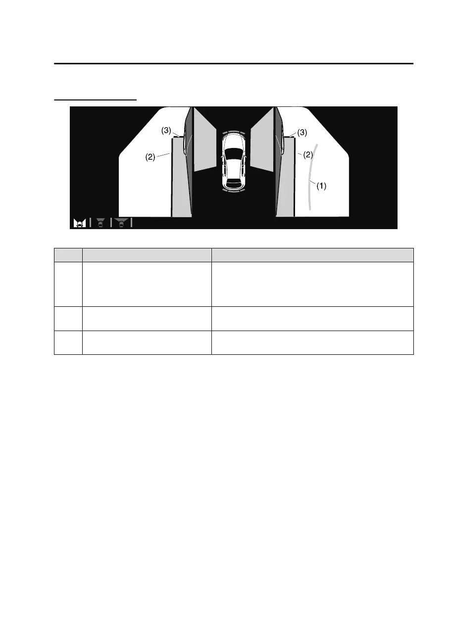 (1) Projected vehicle path lines (yellow) Indicates the approximate projected path of the vehicle.