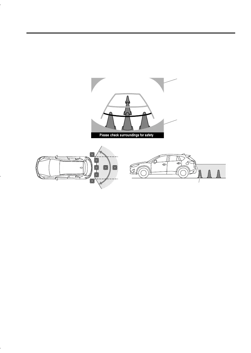 The displayable range is limited. Objects under the bumper or around the bumper ends cannot be