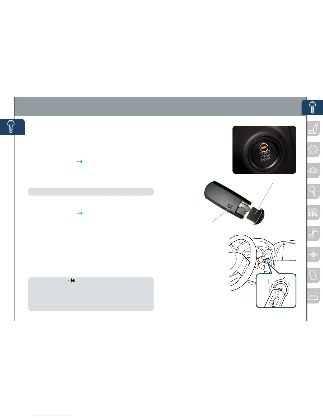 (engine ready to start) when the key is detected and the clutch pedal (M/T)