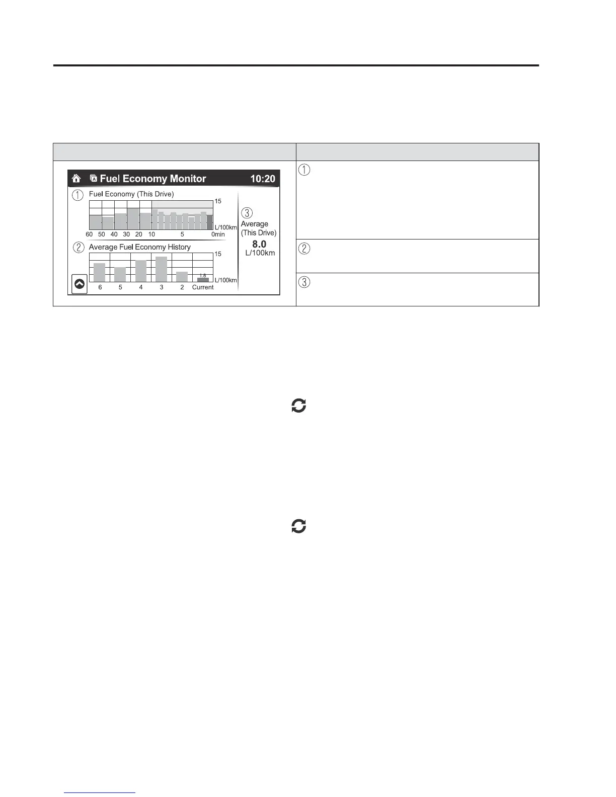 To reset the fuel economy data, press the icon in the menu. (The average fuel