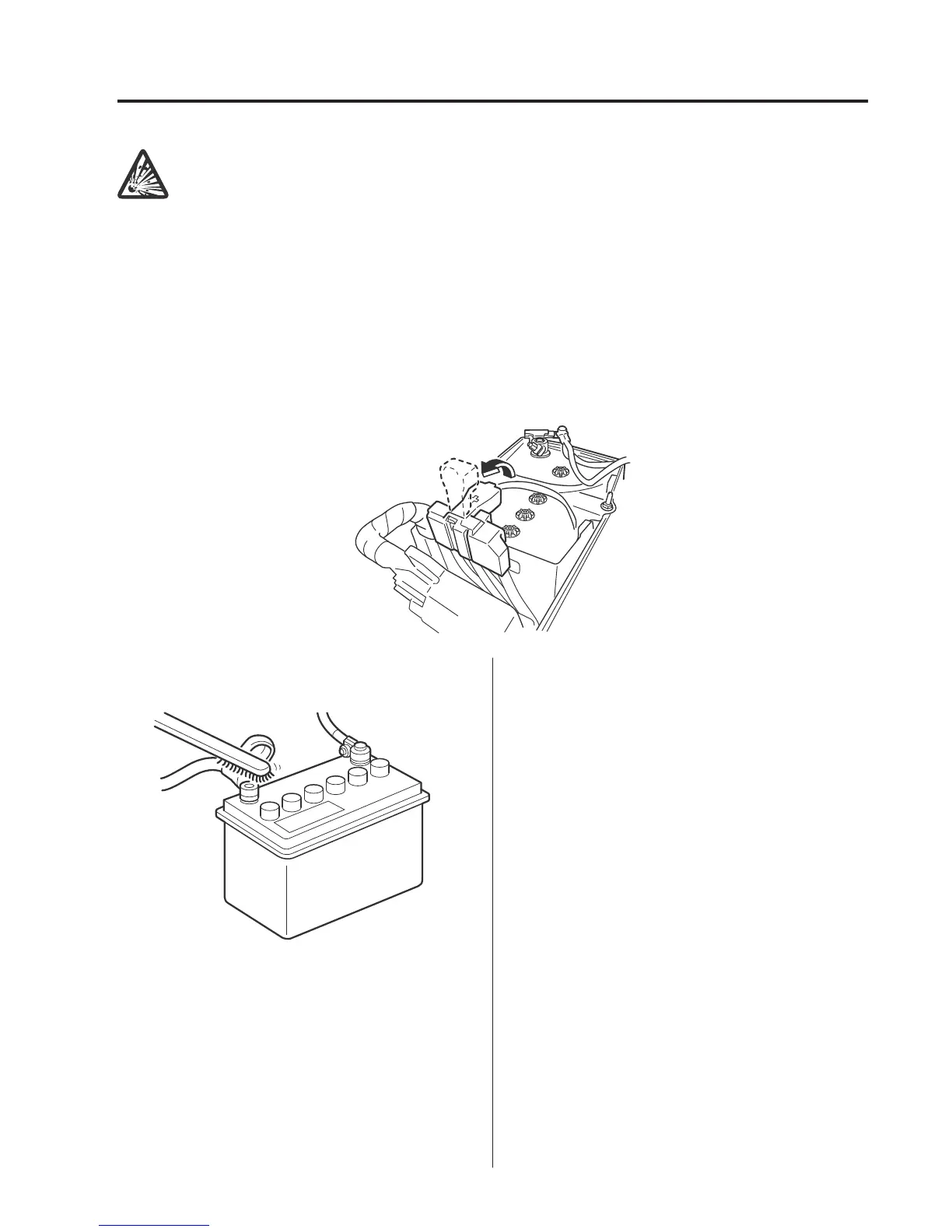 Keep all ames and sparks away from open battery cells because hydrogen gas is