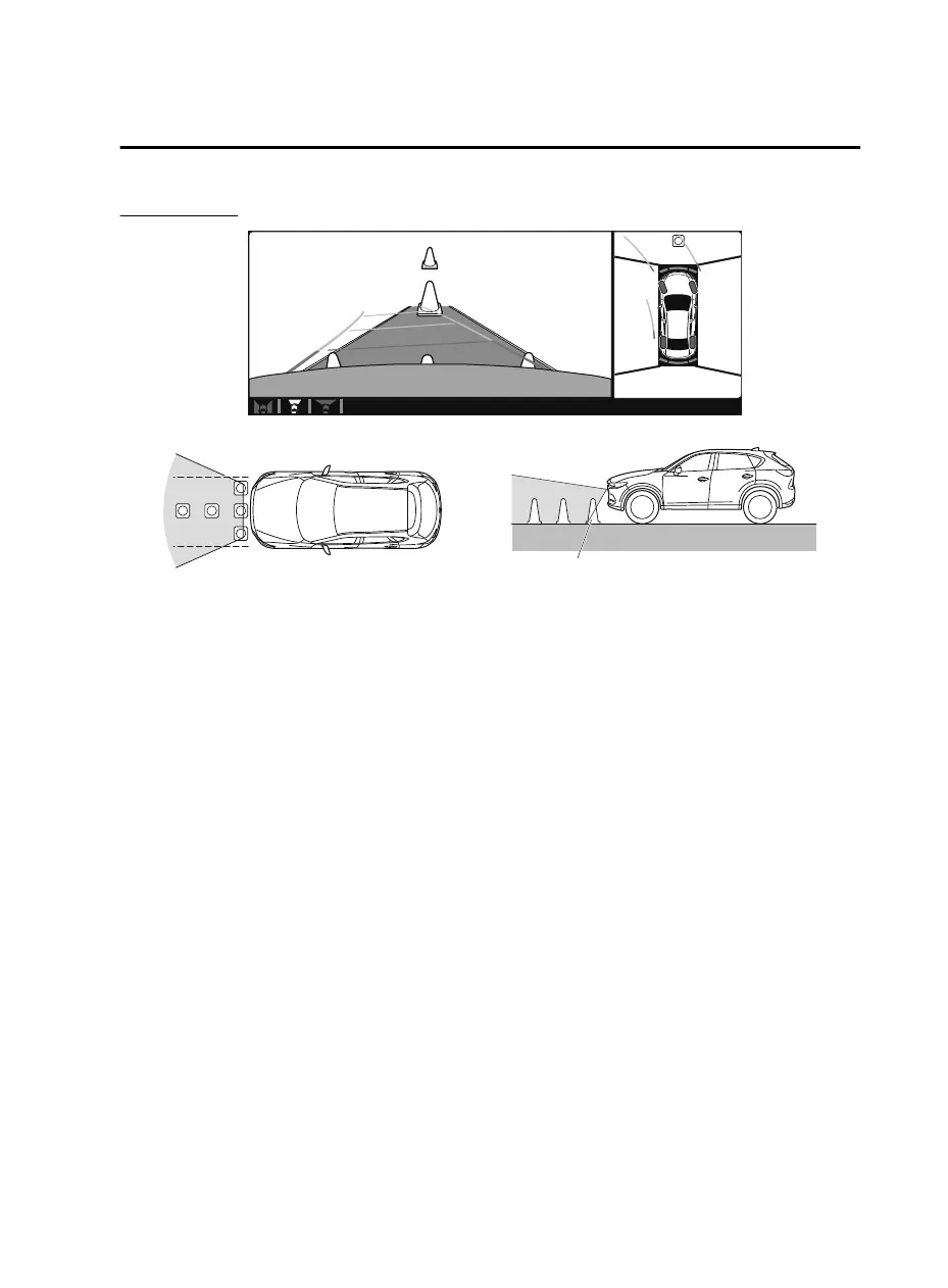 In the top view screen, the areas in black at the front and rear of the vehicle image and the