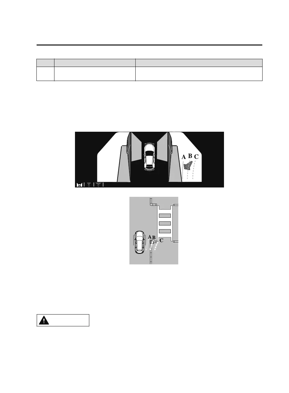 (3) Vehicle front end guide lines (blue) Indicates the point about 0.25 m (9.8 in) from the front edge