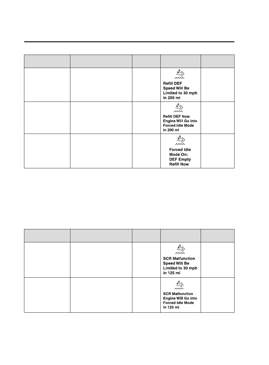 The following indications are displayed when there is a problem with the SCR system/DEF.