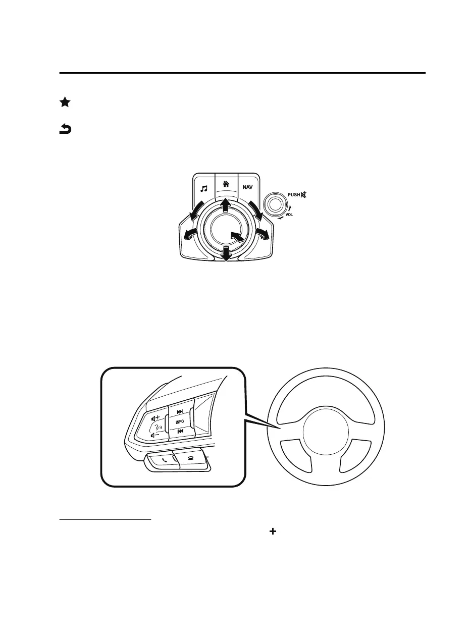 : Displays the Favorites screen. Long-press to store particular items in Favorites. (Radio,