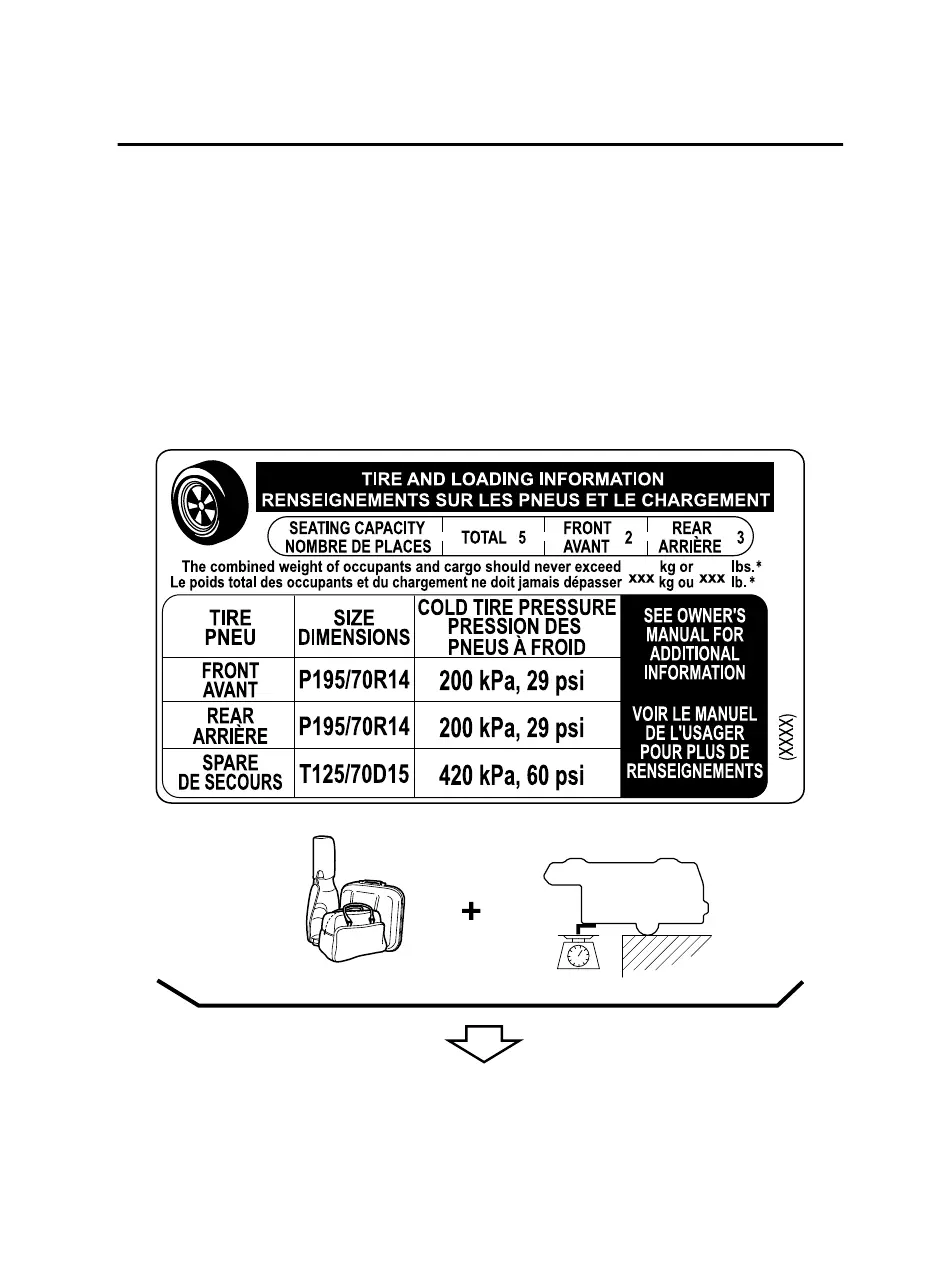 WEIGHT OF OCCUPANTS AND CARGO SHOULD NEVER EXCEED XXX kg or XXX