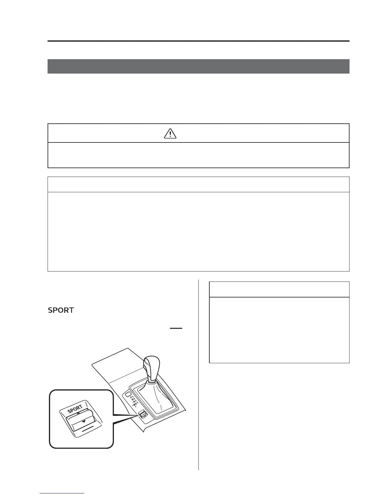 Do not use the sport mode when driving on slippery roads such as wet or snow-cover ed