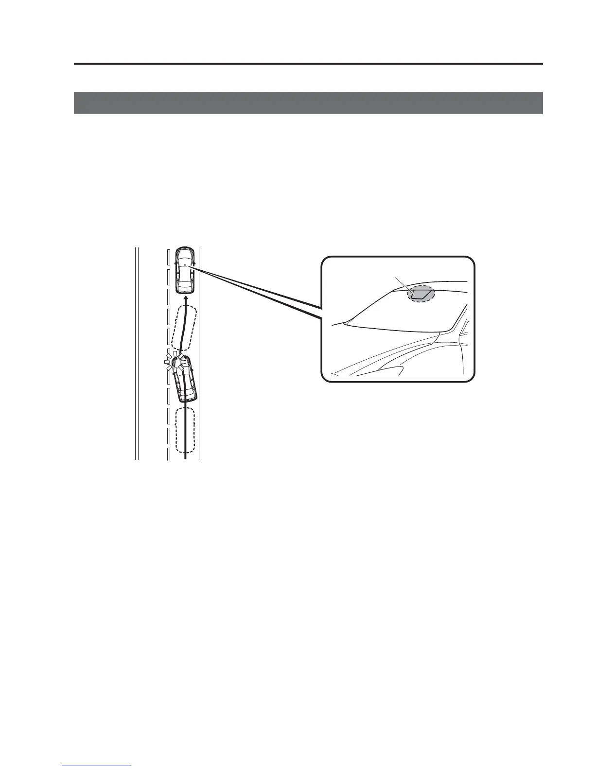The system detects the white or yellow lines on the traffic lane using the forward sensi ng