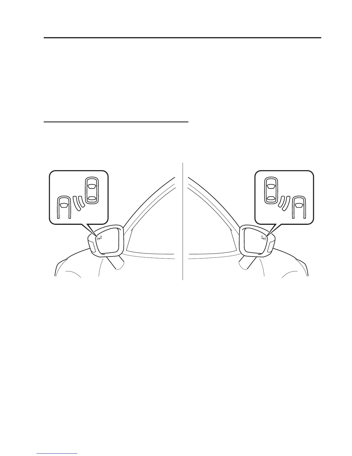 mirrors. The warning lights turn on when a vehicle approaching from the rear in an