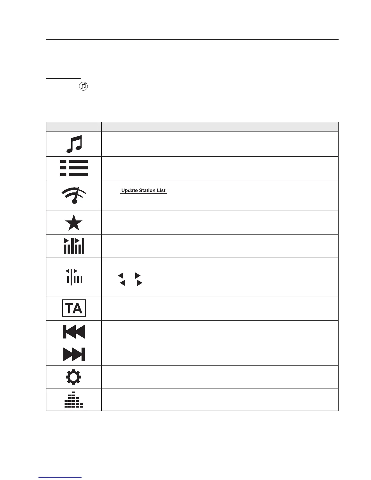 selecting the desired radio, the following icons are indicated in the lower part of the centre