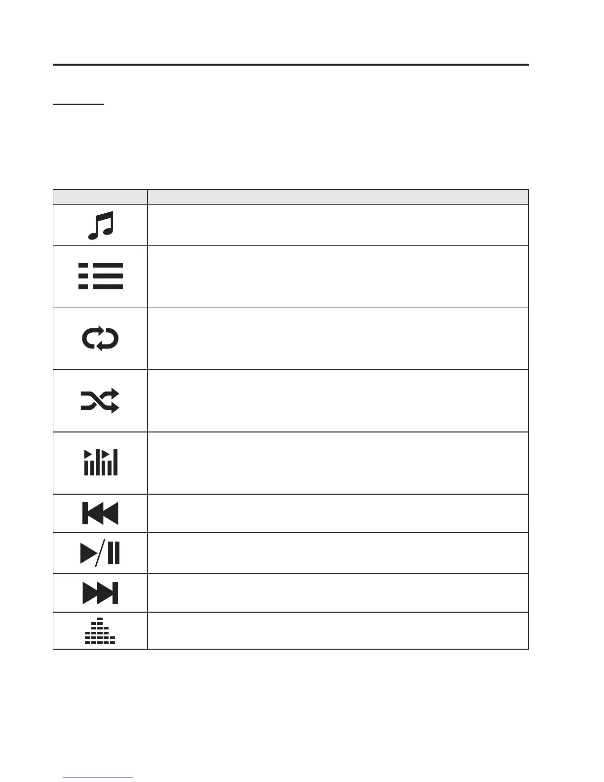 audio mode, the following icons are displayed in the