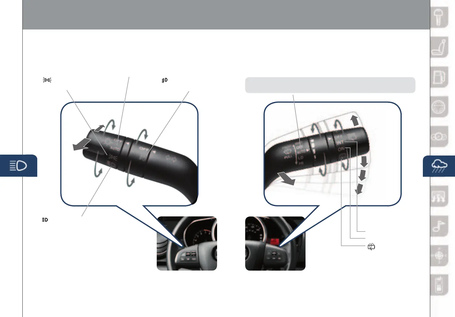AUTO: The rain sensor senses the amount of rainfall and turns the wipers