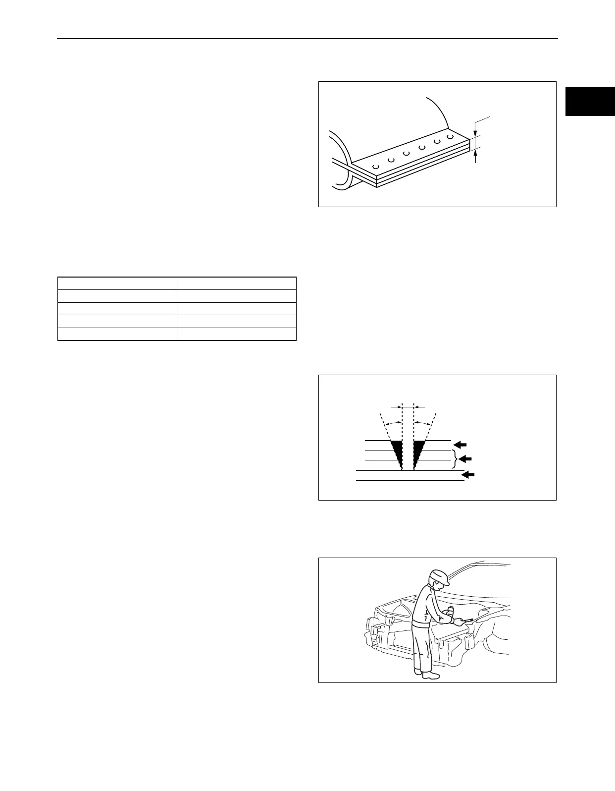 • If the total thickness at the area to be welded is 3 mm {0.12 in} or more, use a CO