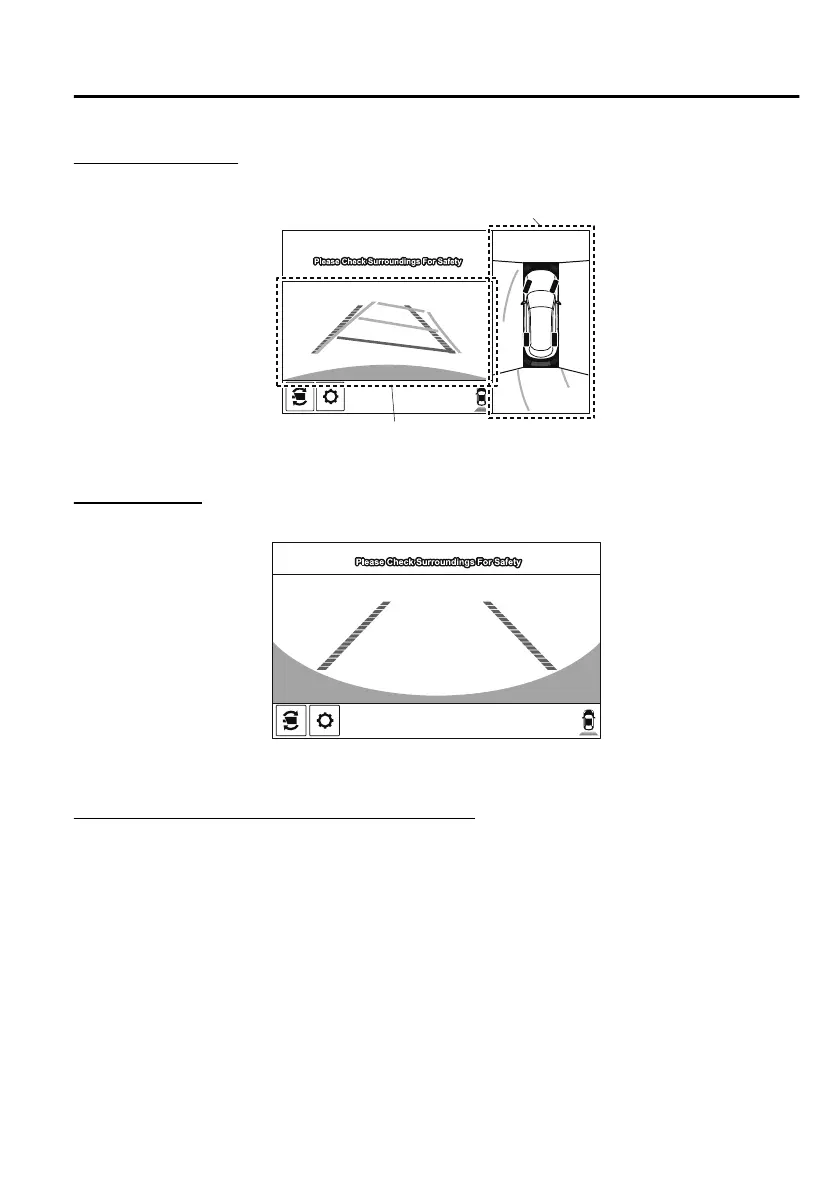 Displays the image of the area around the vehicle and the rear of the vehicle.