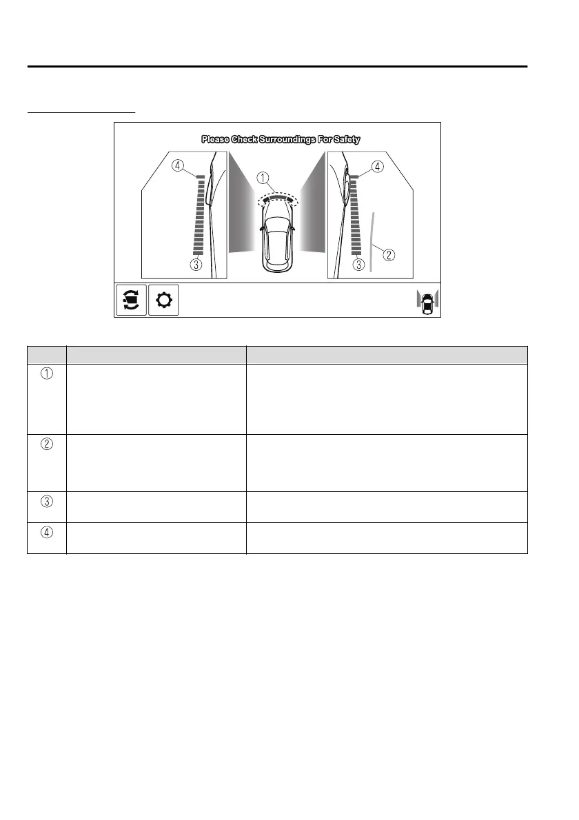 Vehicle parallel guide lines (blue) Indicates the approximate vehicle width including the door