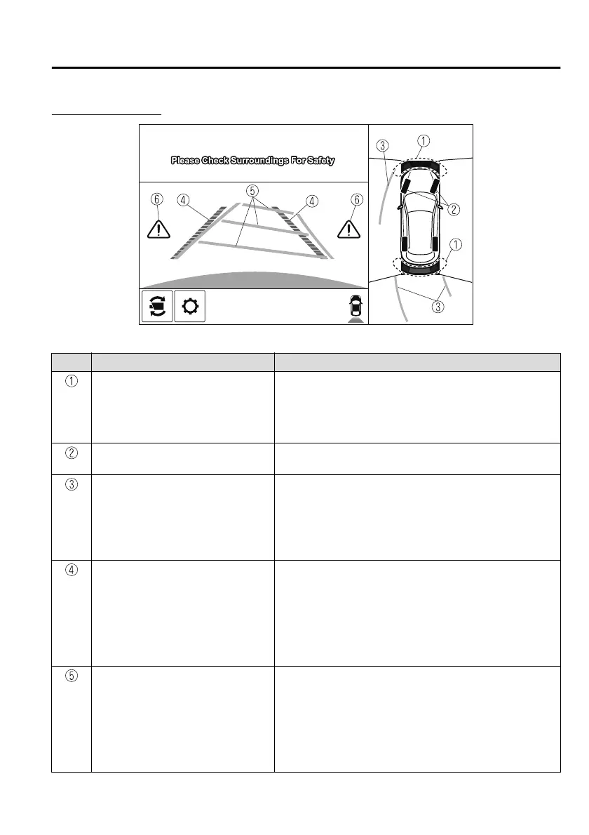 Projected vehicle path lines (amber) Indicates the approximate projected path of the vehicle.
