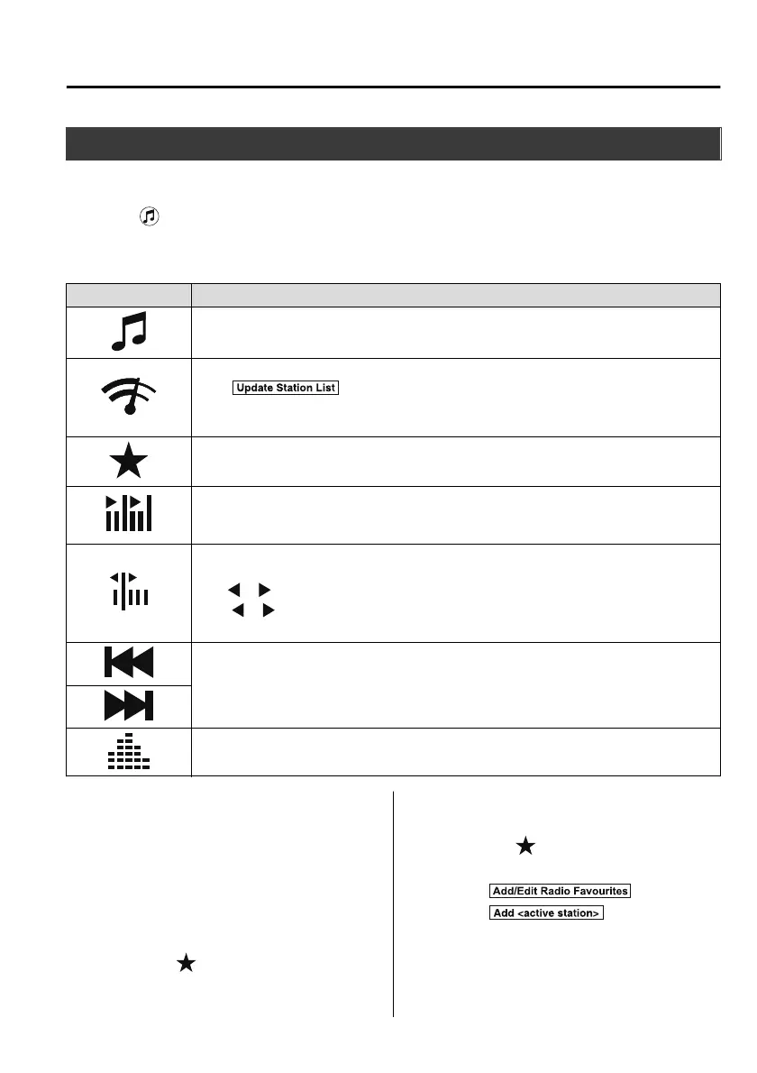 the desired radio, the following icons are indicated in the lower part of the centre display.