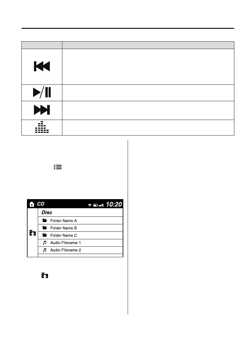 Plays a CD. When selected again, playback is temporarily stopped.