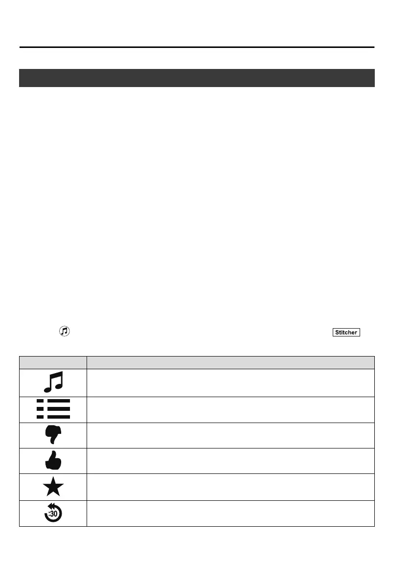 For details on Stitcher™ Radio, refer to “http://stitcher.com/”.