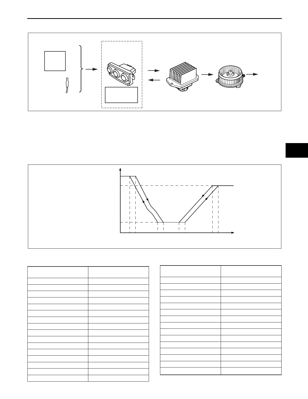 • The front climate control unit calculates the applied voltage to the blower motor based on the input from the
