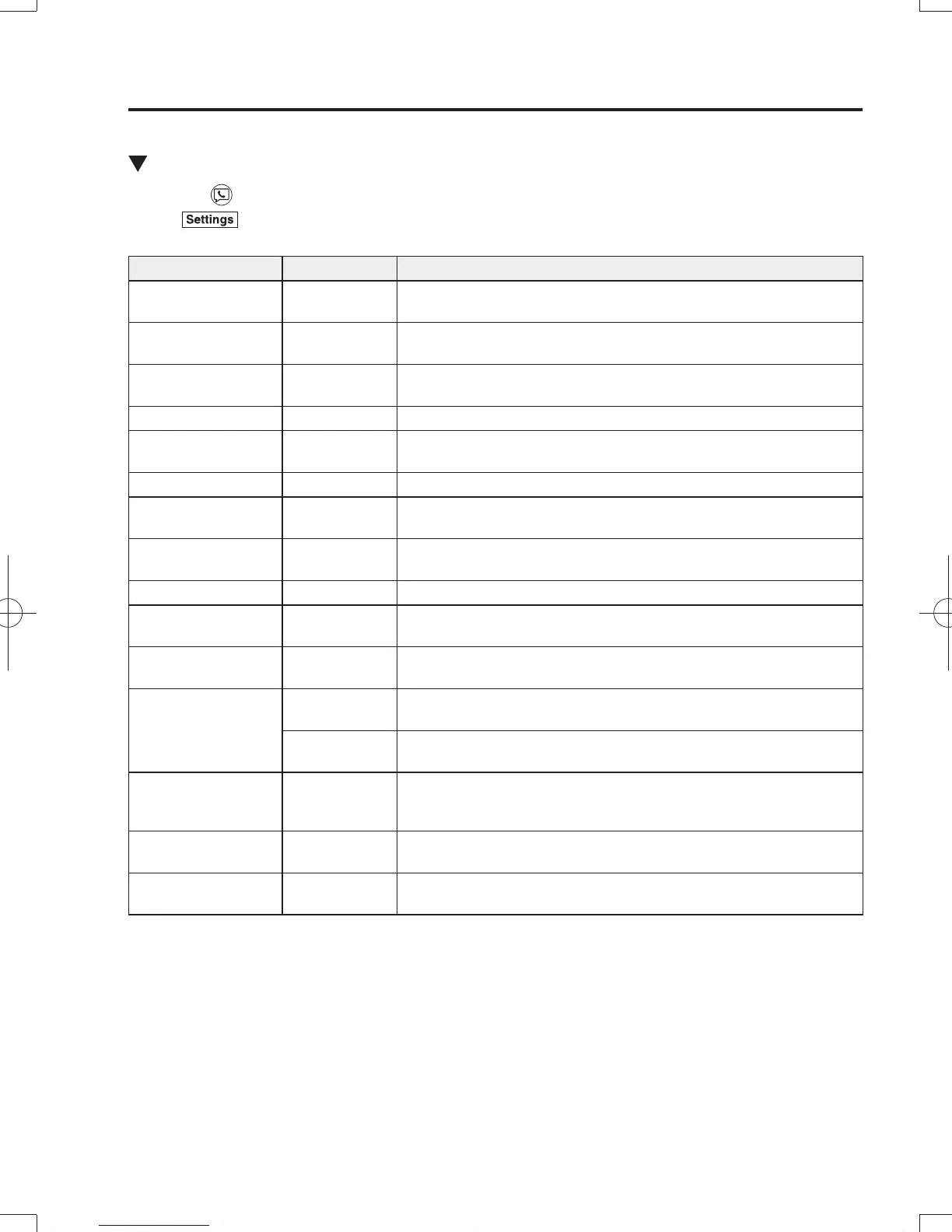 Ringtone Car/Phone/Off Changes the ringtone setting.