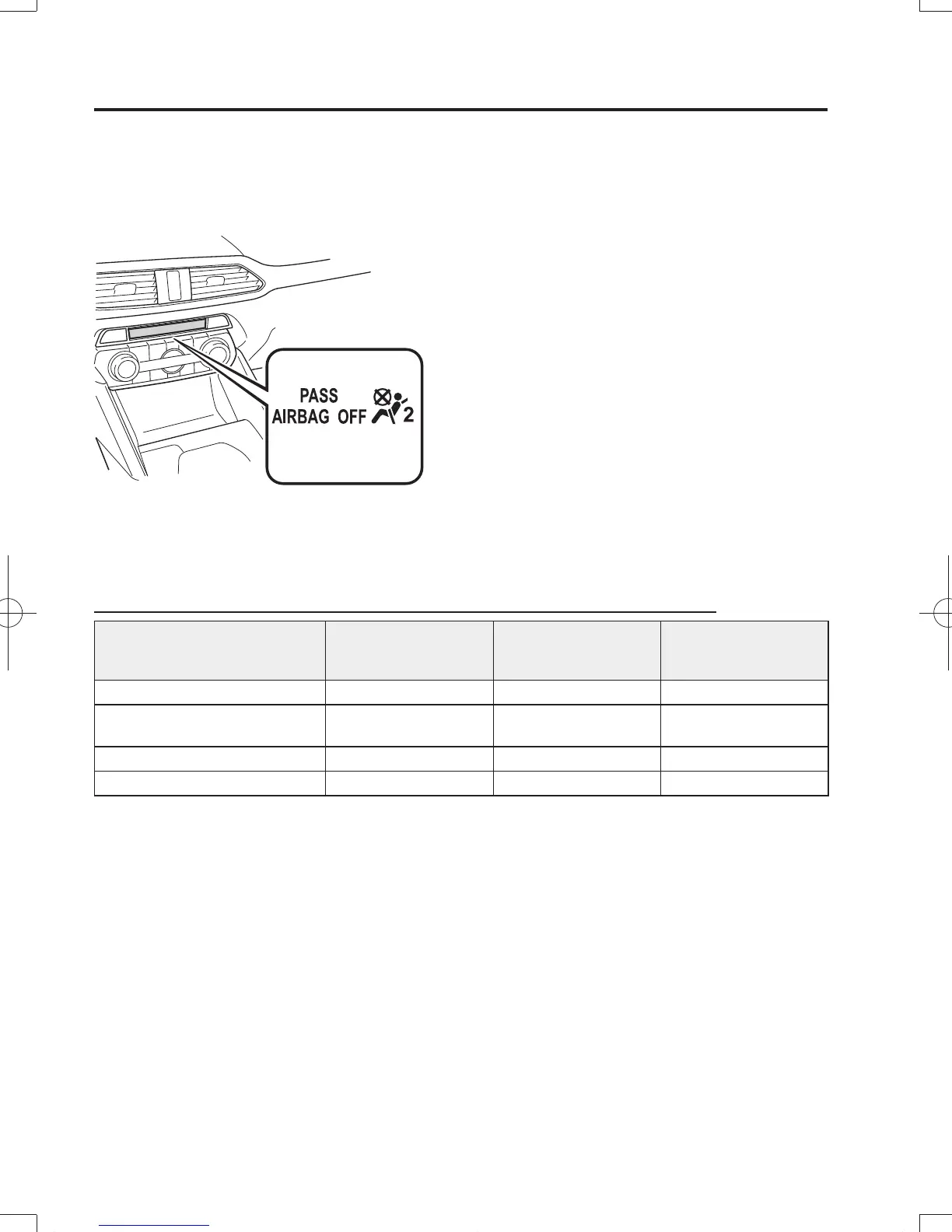 indicator light on/off condition chart, do not allow an occupant to sit in the front passenger