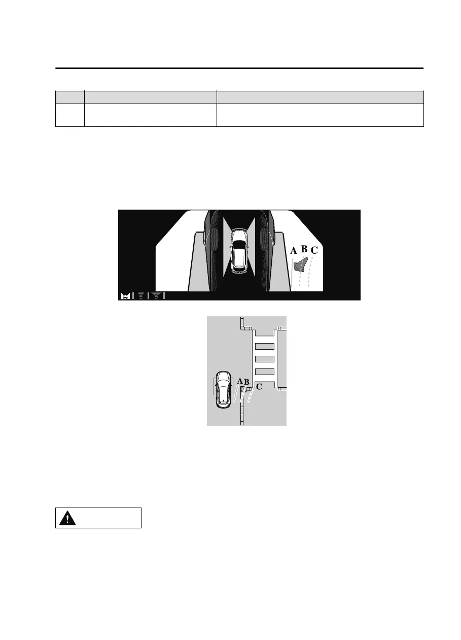 (3) Vehicle front end guide lines (blue) Indicates the point about 0.25 m (9.8 in) from the front edge