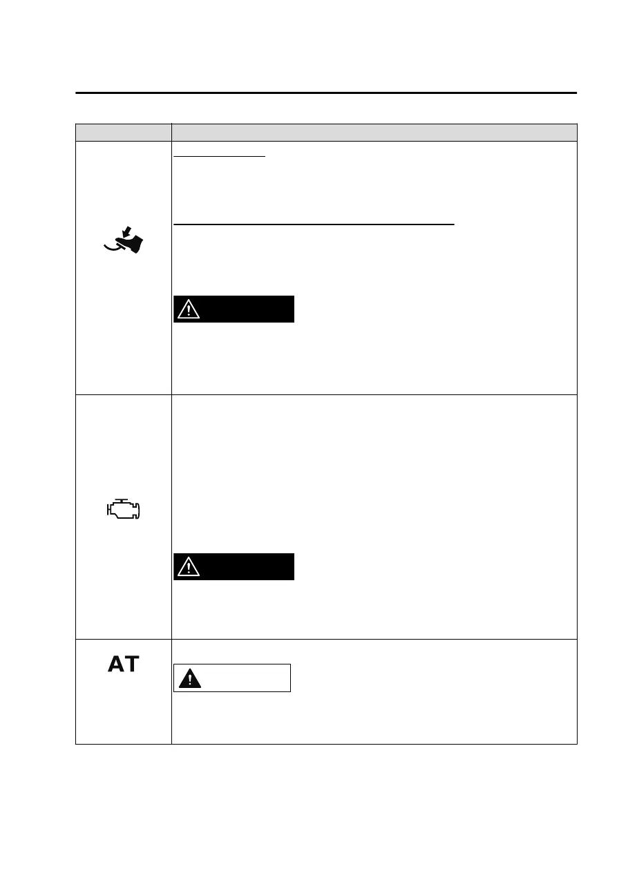 Immediately depress the brake pedal if the warning light ashes and the beep sound is acti‐