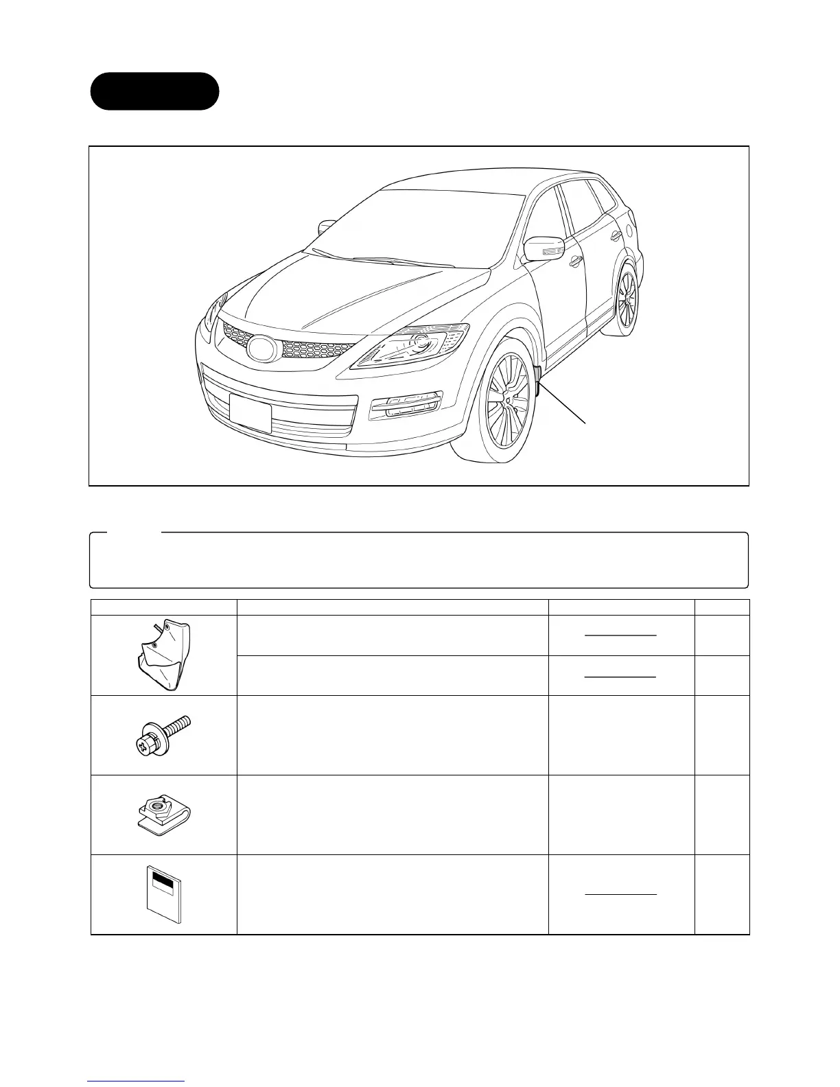 Mazda CX-9 - Parts List