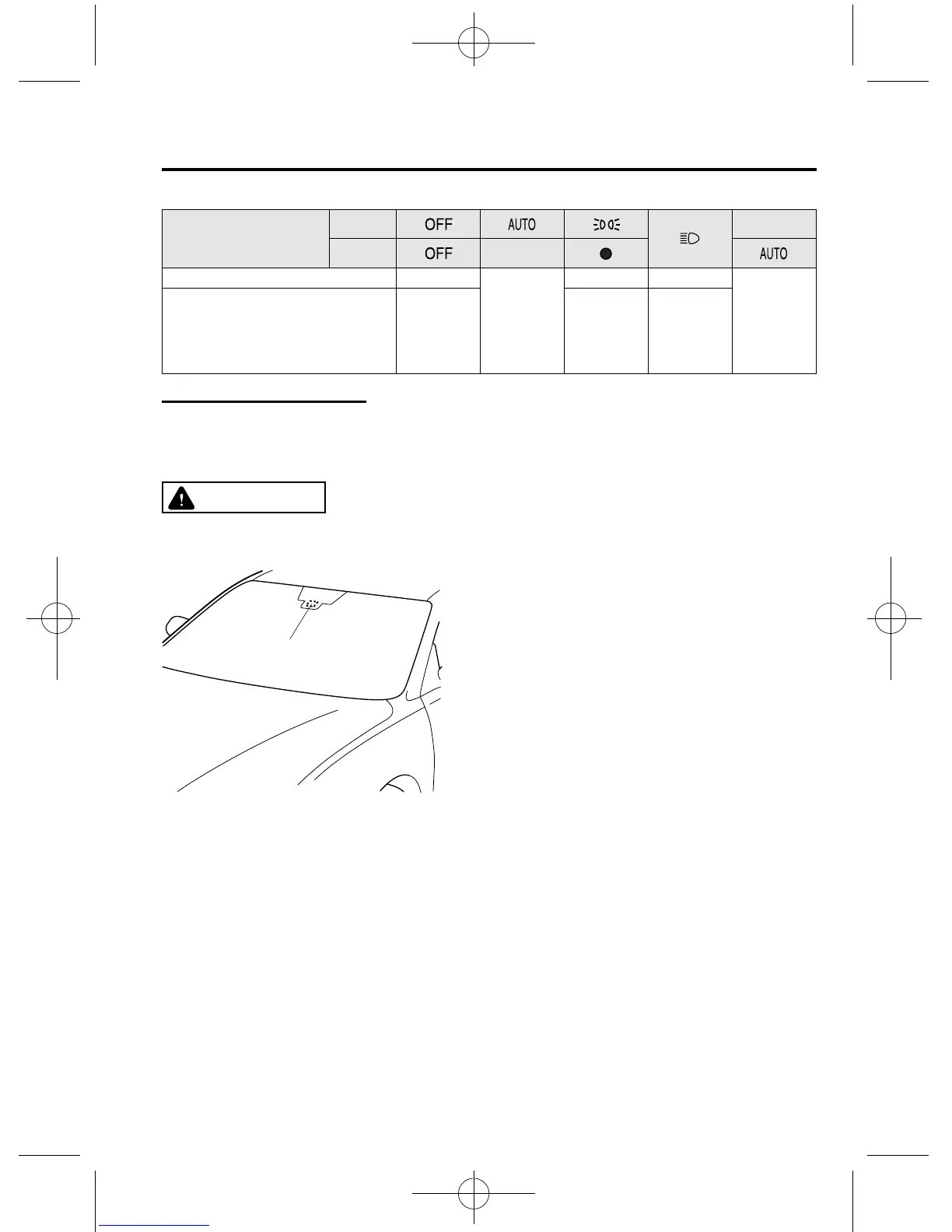 Ø Do not shade the light sensor by adhering a sticker or a label on the windshield.
