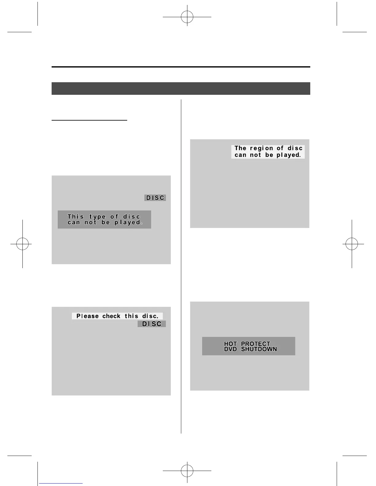 An error message is displayed if a disc