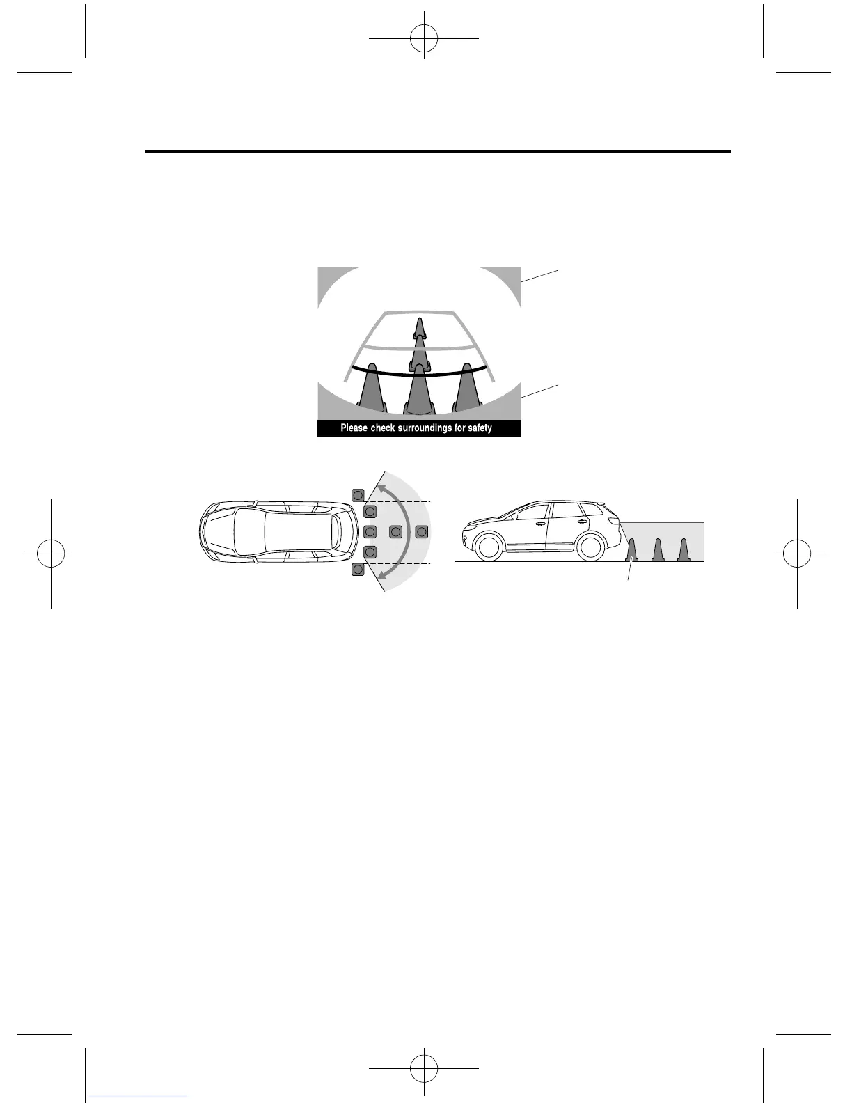 The displayable range is limited. Objects under the bumper or around the bumper ends cannot be
