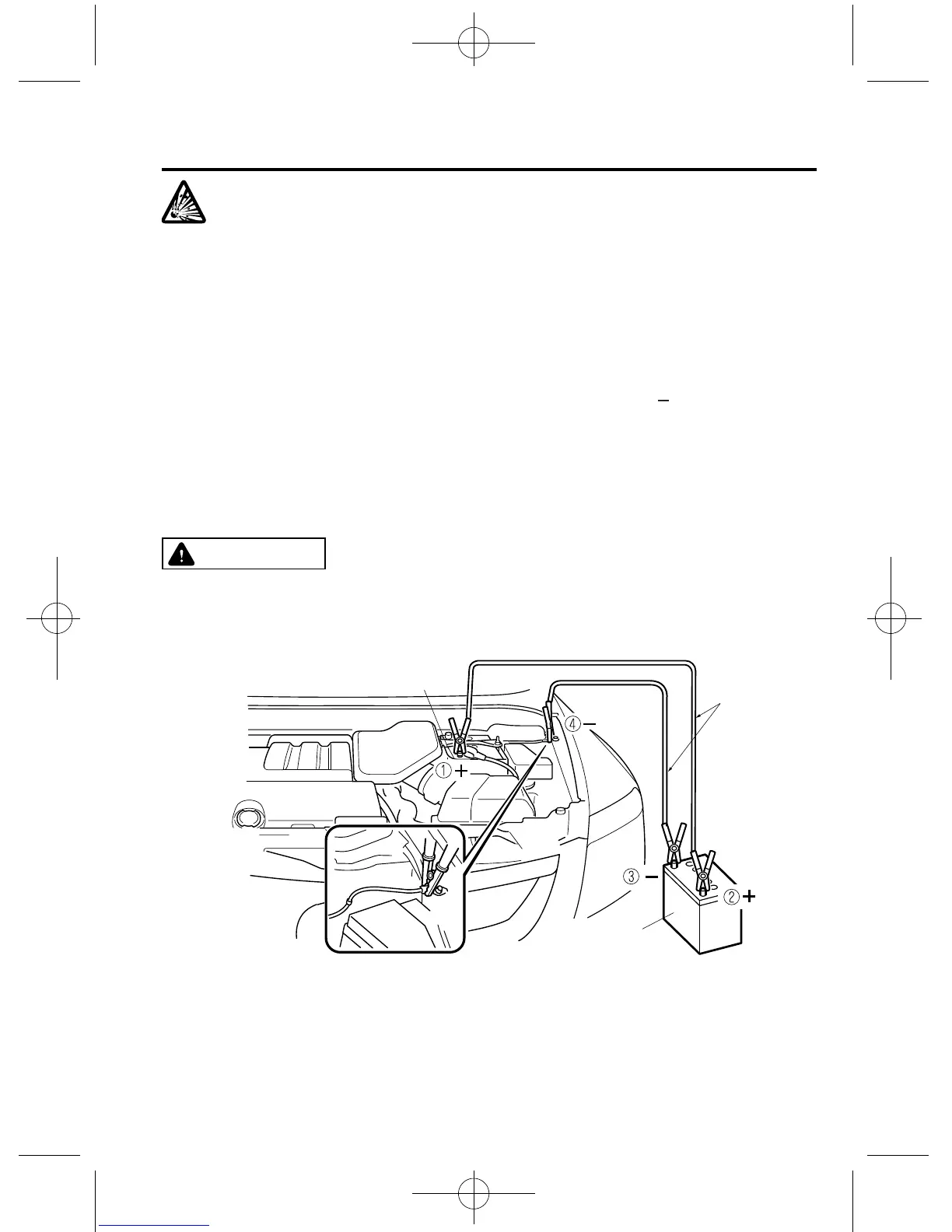 Connecting a jumper cable near or to moving parts (cooling fans, belts) is dangerous.