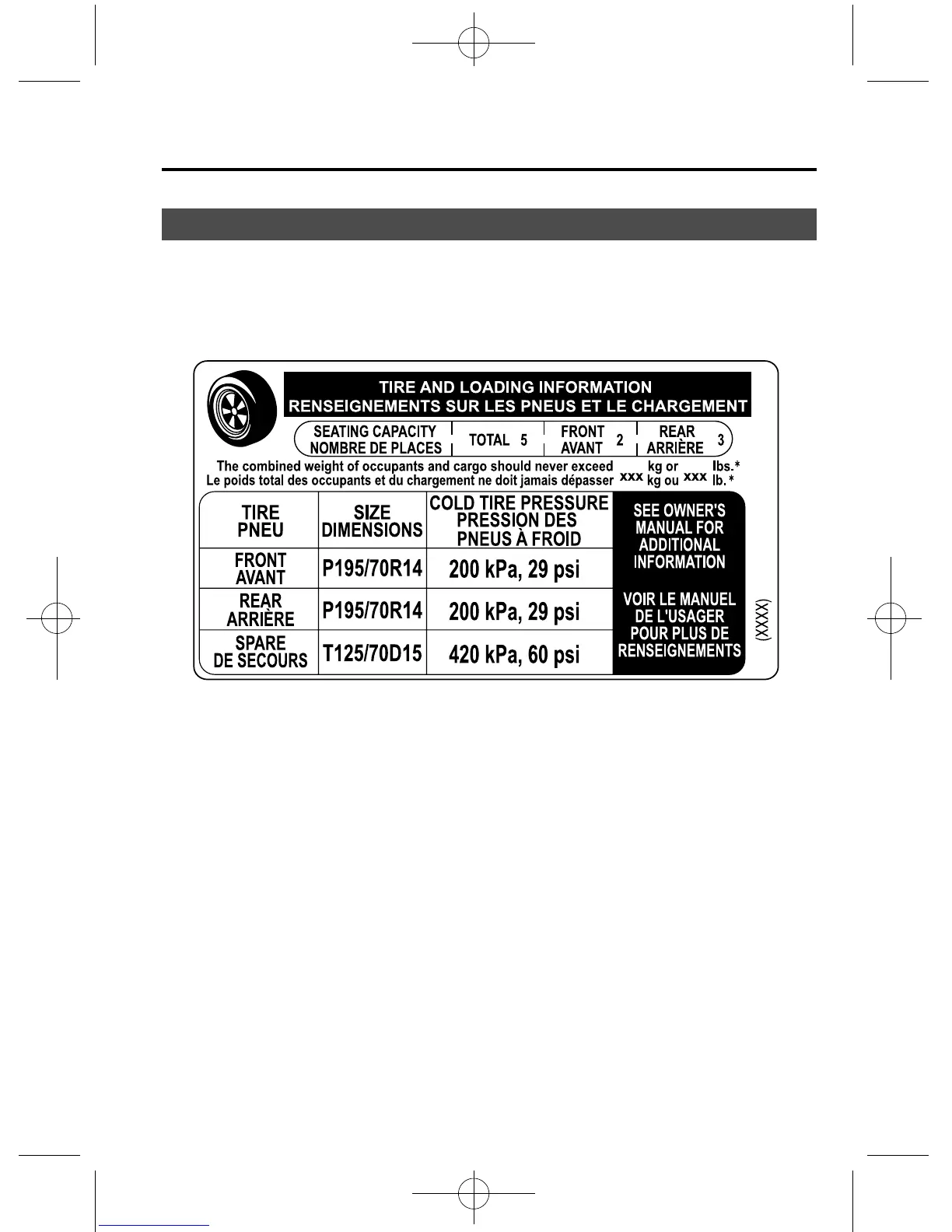 On the tire label you will find the recommended tire inflation pressure in both kPa and psi