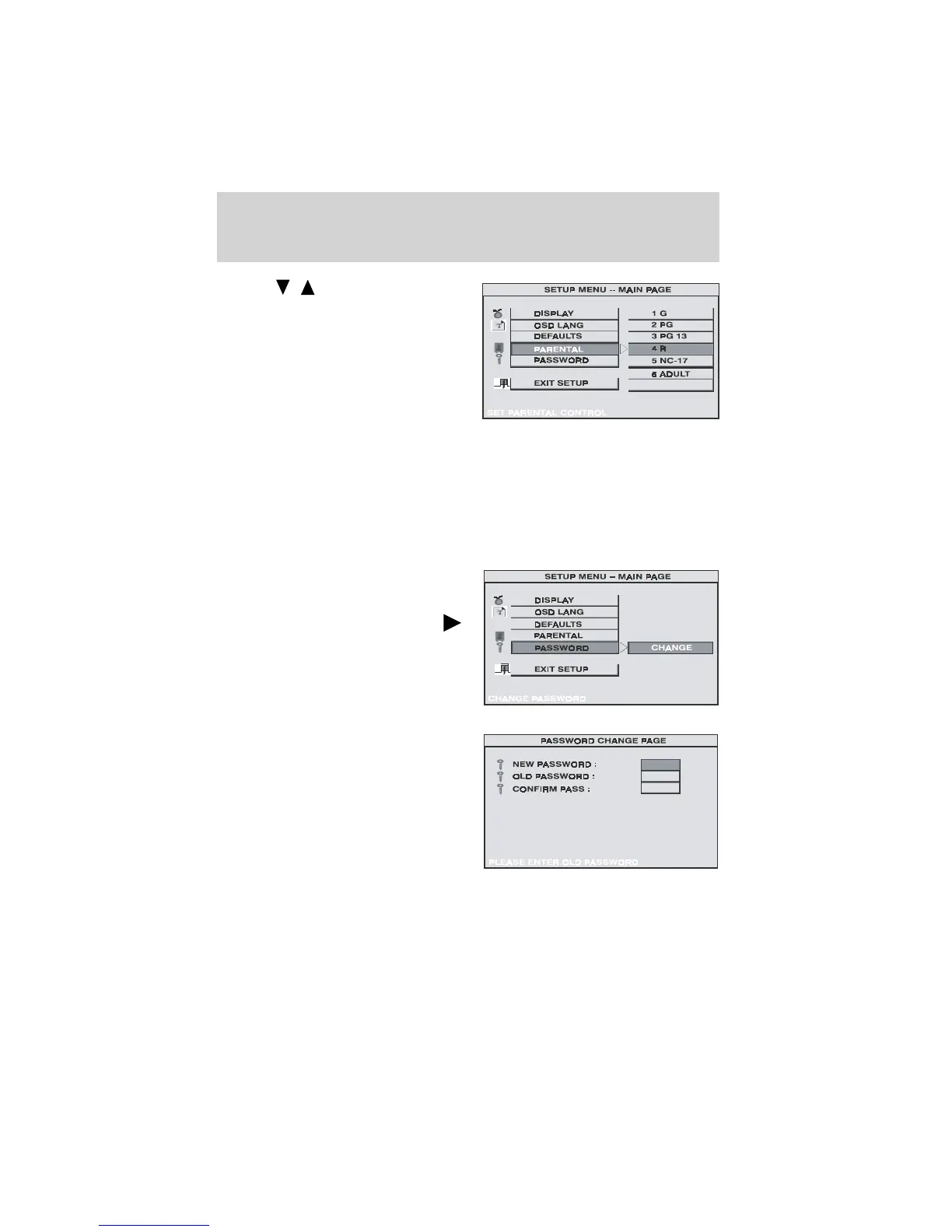 SETTINGS FOR PASSWORD (PARENTAL CONTROL PASSWORD)