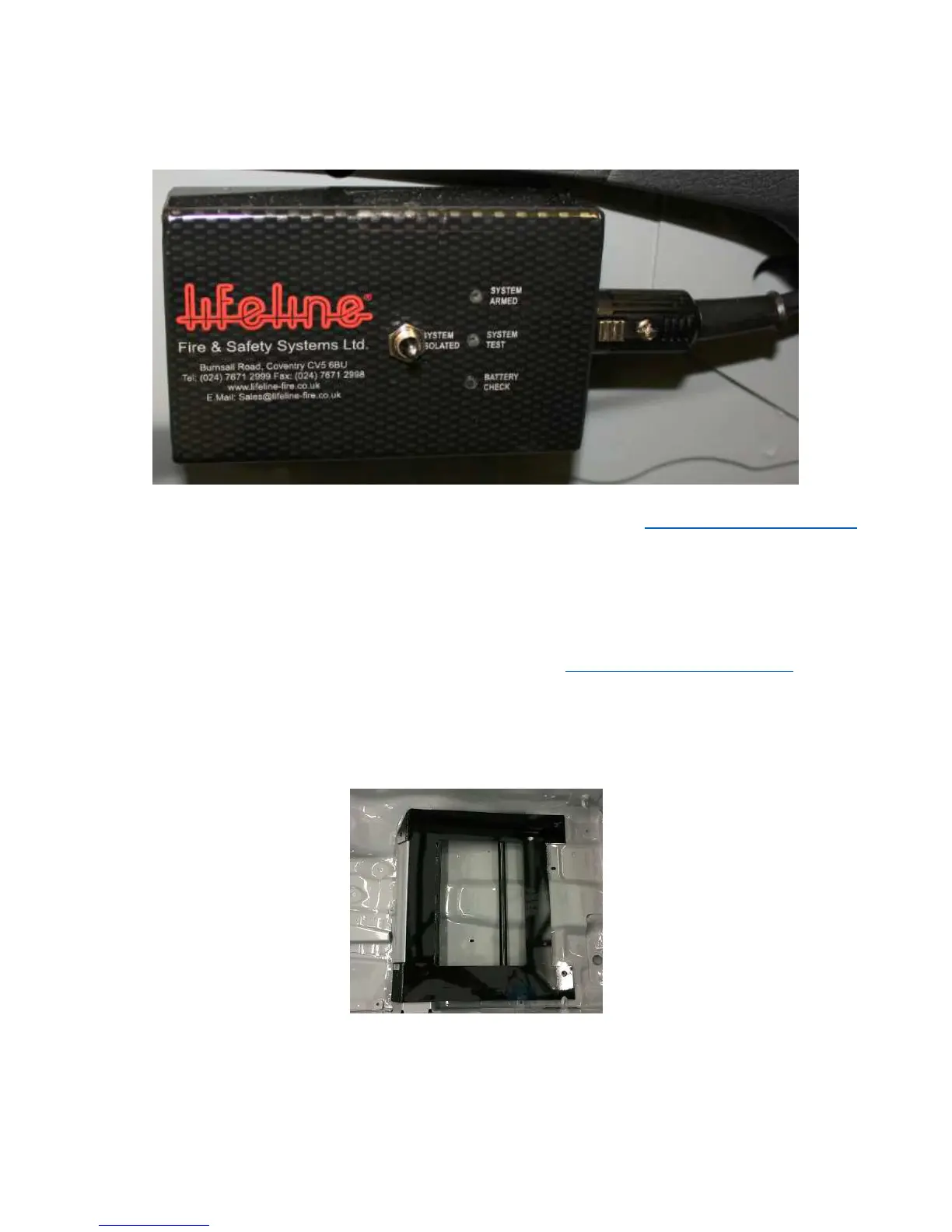 • Review the LifeLine instruction booklet included in the trunk kit, or online at http://www.lifeline-fire.co.uk/
