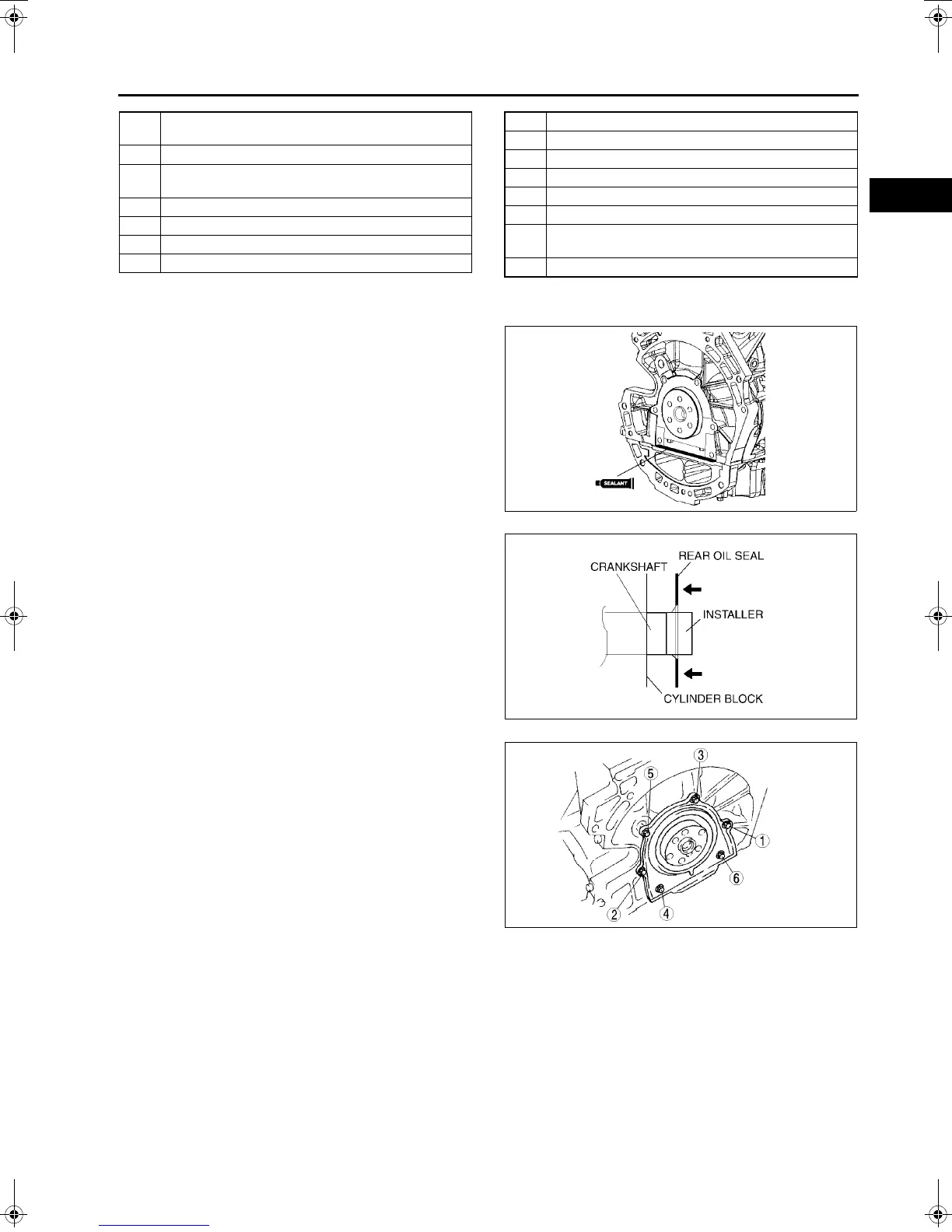 4. Tighten the rear oil seal bolts in the order as