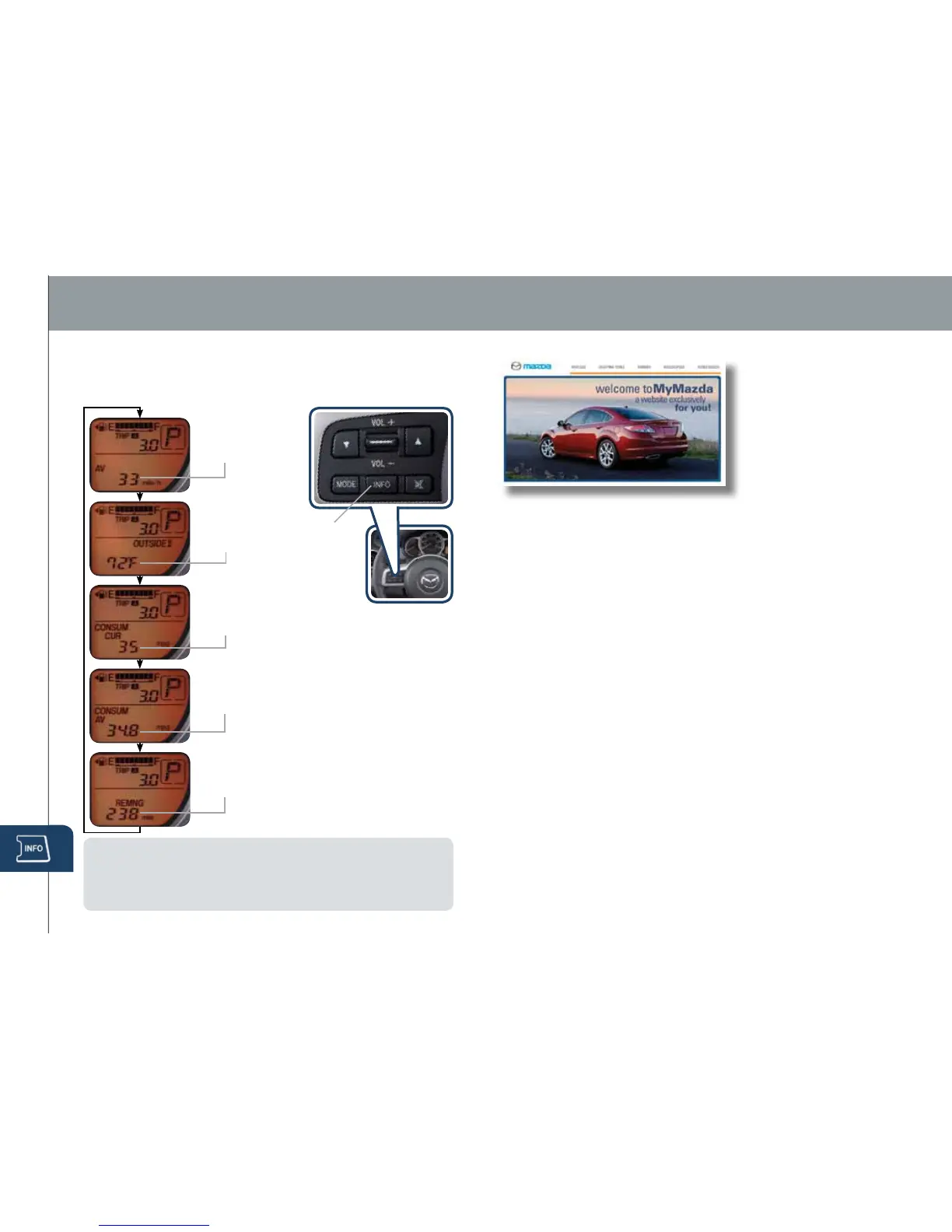 • To clear Average MPH or Consumer Avg MPG, push and hold INFO button