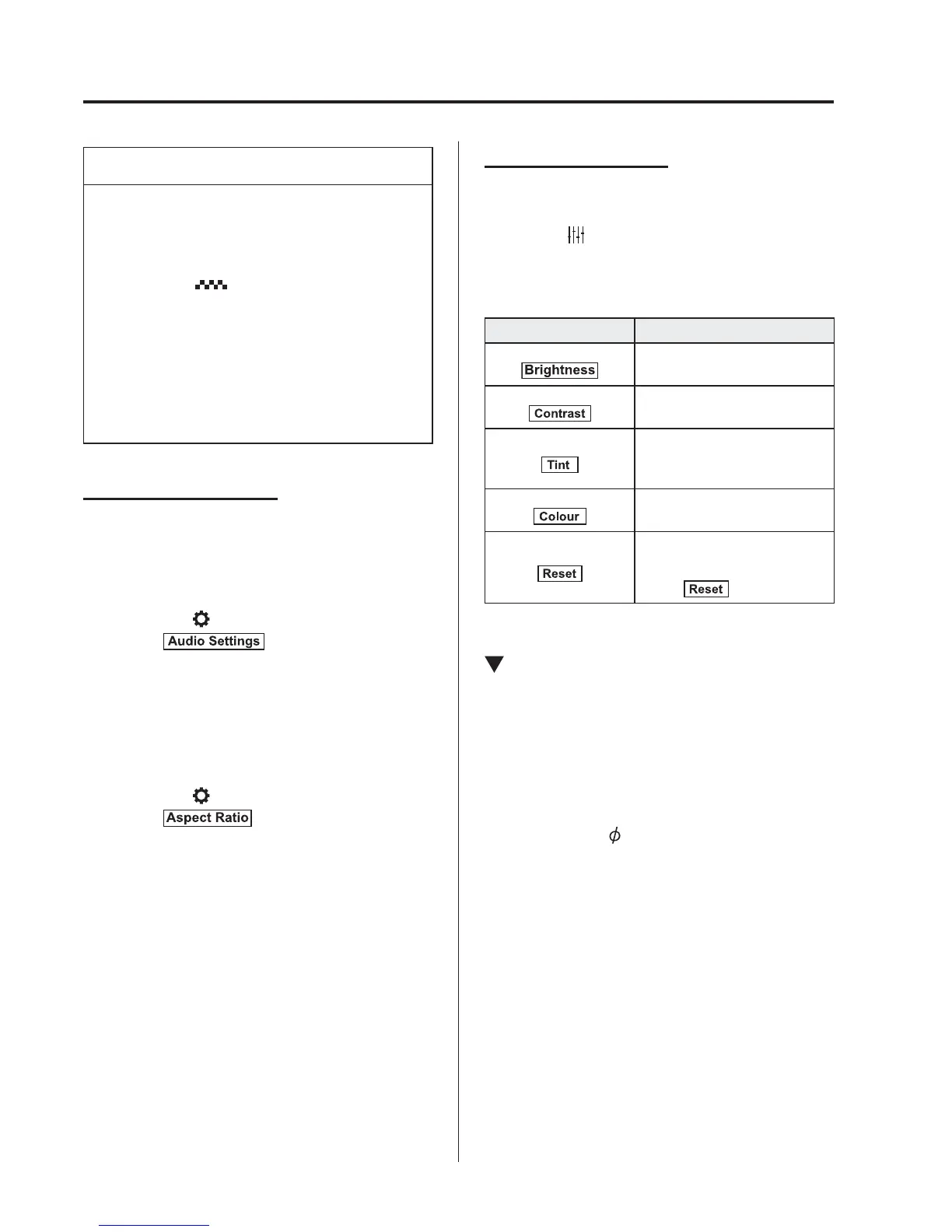 Sound quality and aspect ratio settings can