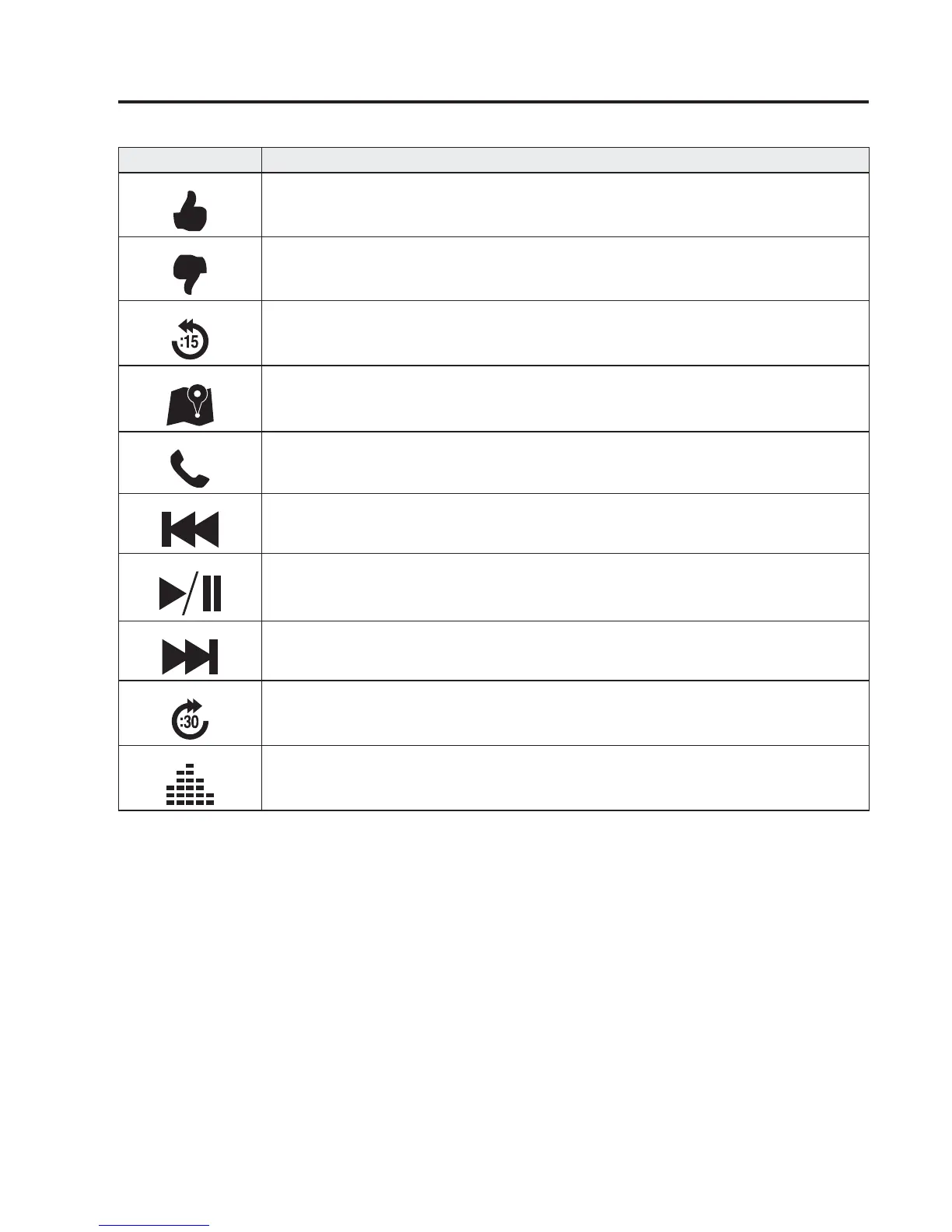Pauses playback of the content. When selected again, playback resumes.