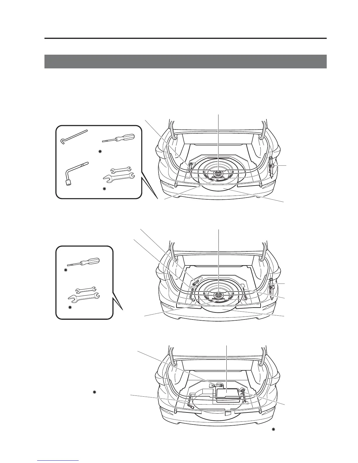 Spare tyre and tools are stored in the locations illustrated in the diagram.