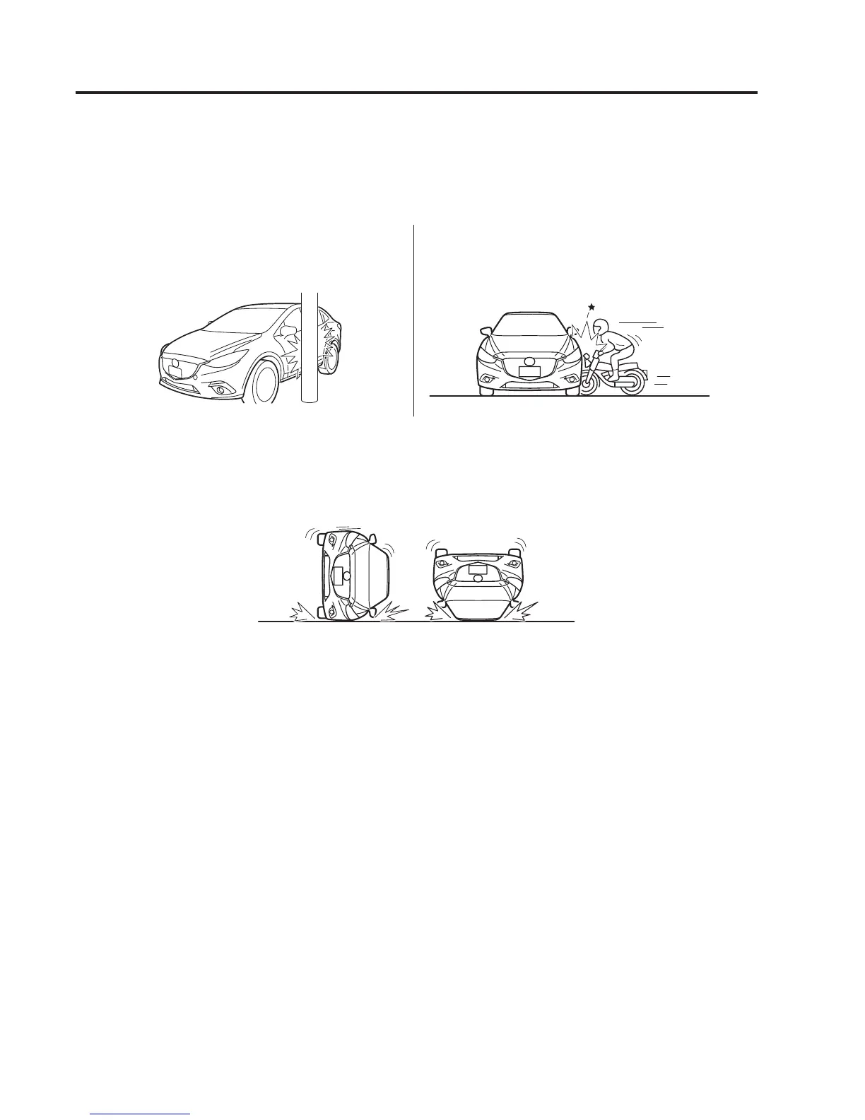 The following illustrations are examples of side collisions that may not be detected as severe