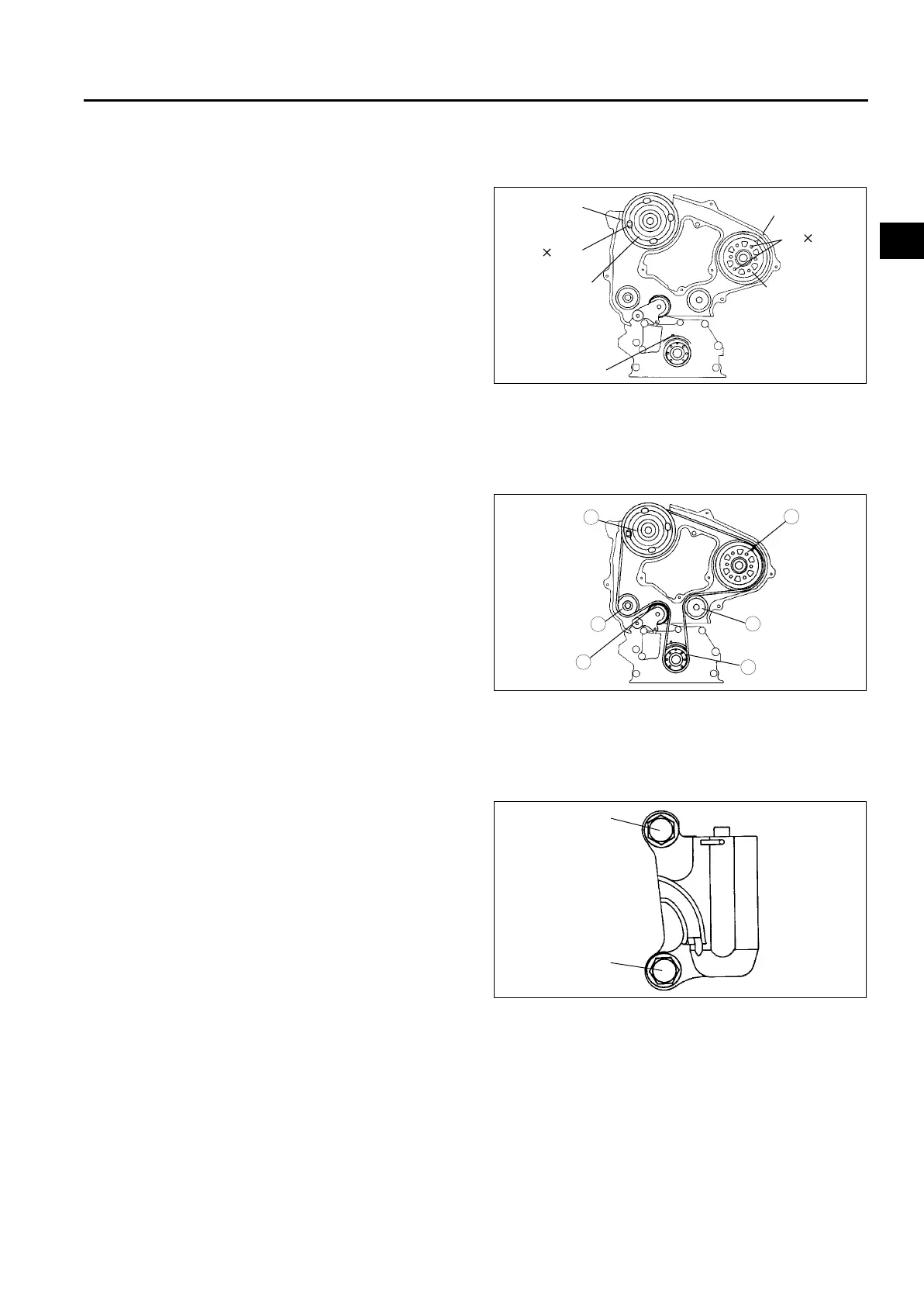• To prevent the bolts (M8 x 1.25) from damaging the fuel injection pump and pulley, do not fully