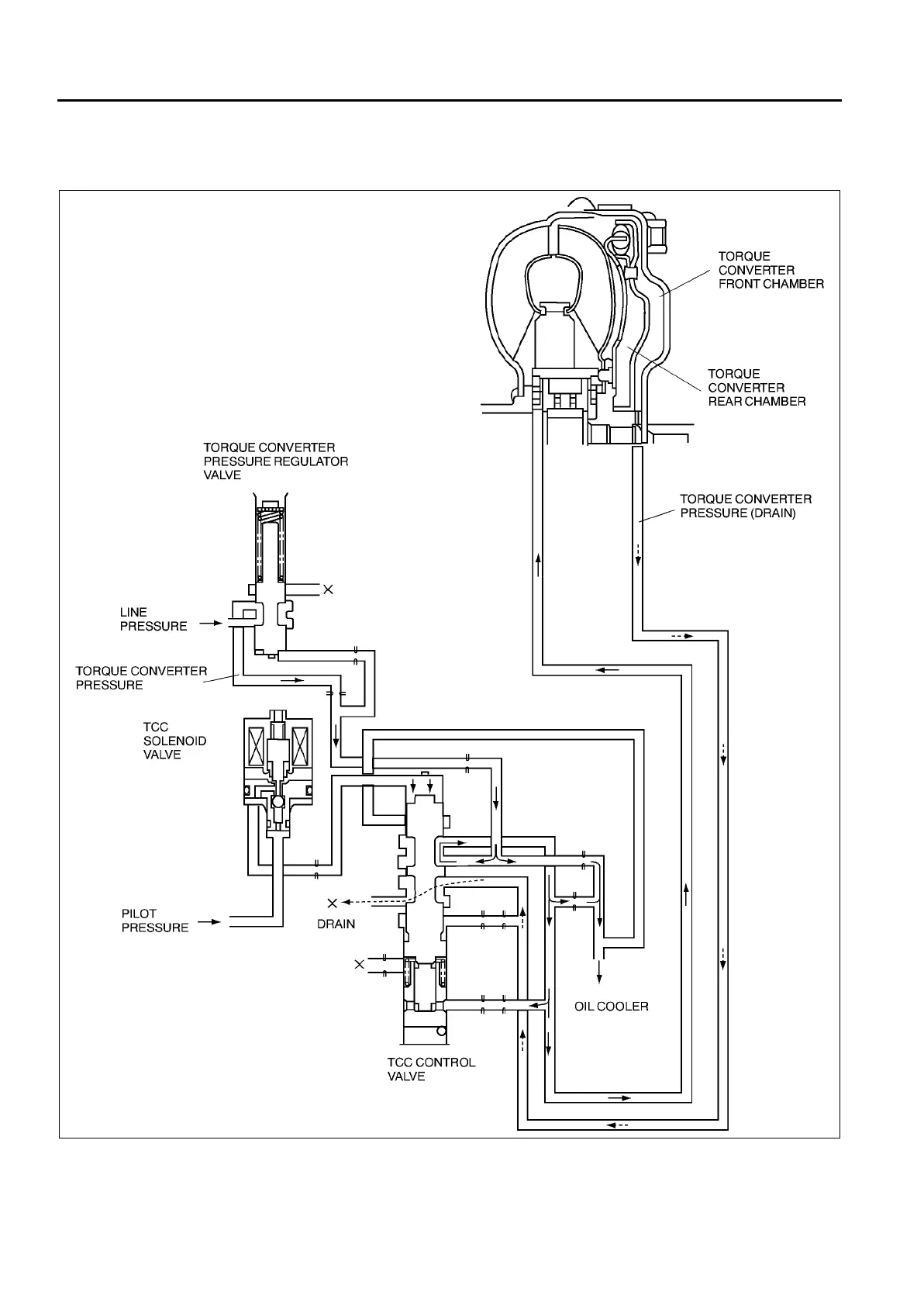chamber is drained through the TCC control valve, engaging torque converter clutch.