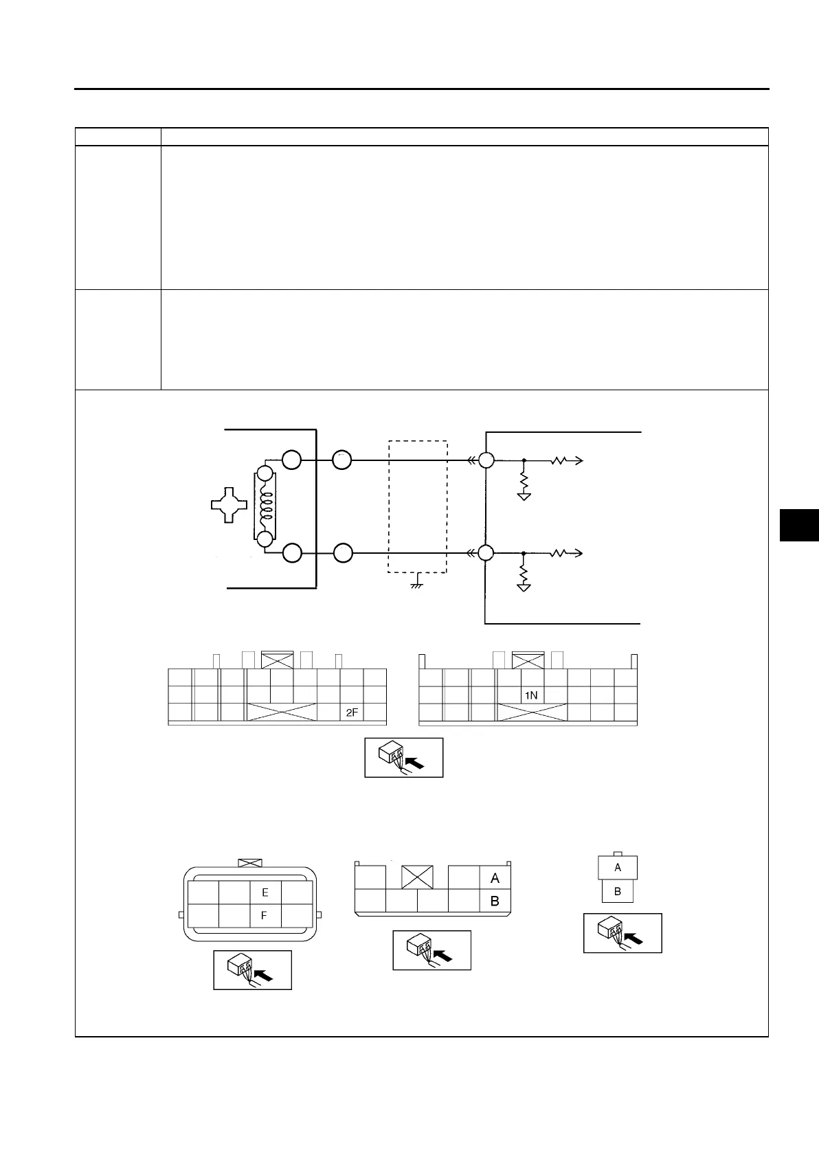 • Open circuit between input/turbine speed sensor terminal A and TCM terminal 2F