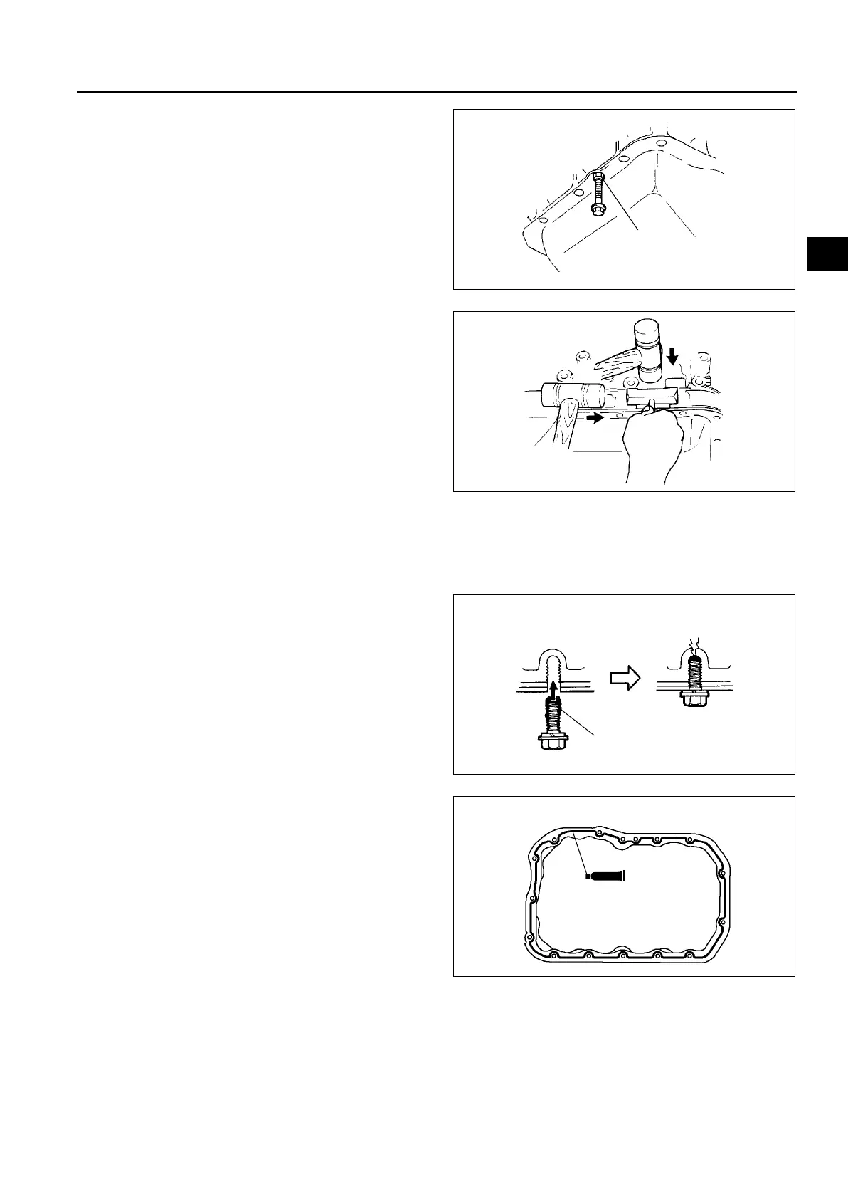 • If the bolts are reused, remove the old sealant from the bolt threads. Tightening a bolt that has old