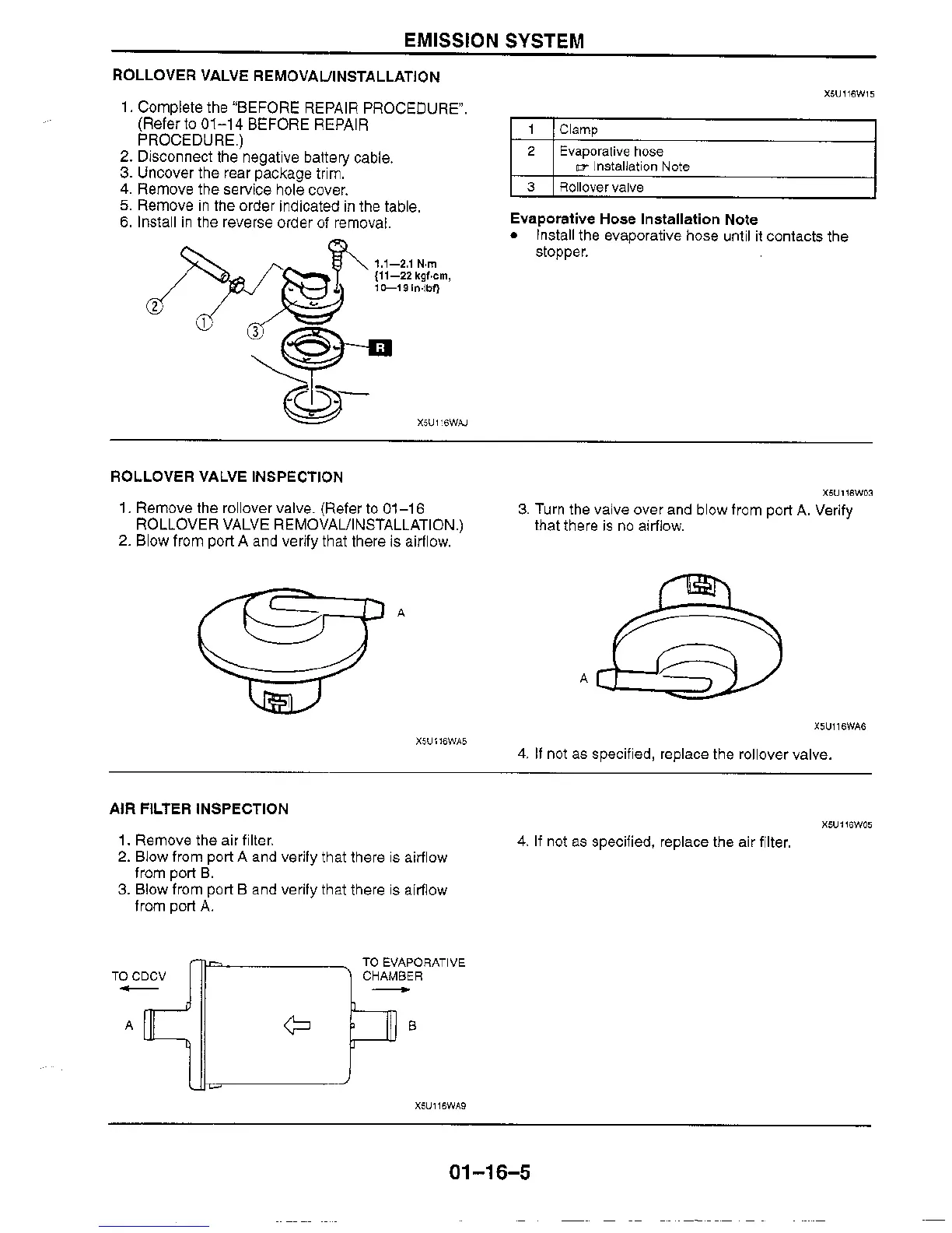 Mazda MIATA - Rollover Valve Removal;Installation; Rollover Valve Inspection; Air Filter Inspection